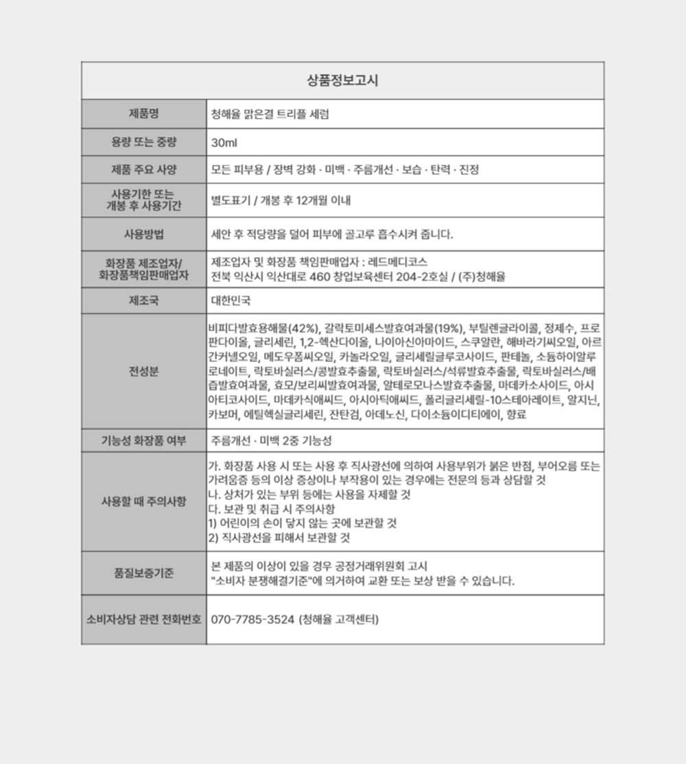 청해율 세럼 1병에 든 유효성분만으로도