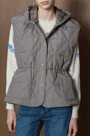 고급스런 스티치 디테일의 후드 패딩 조끼예요.