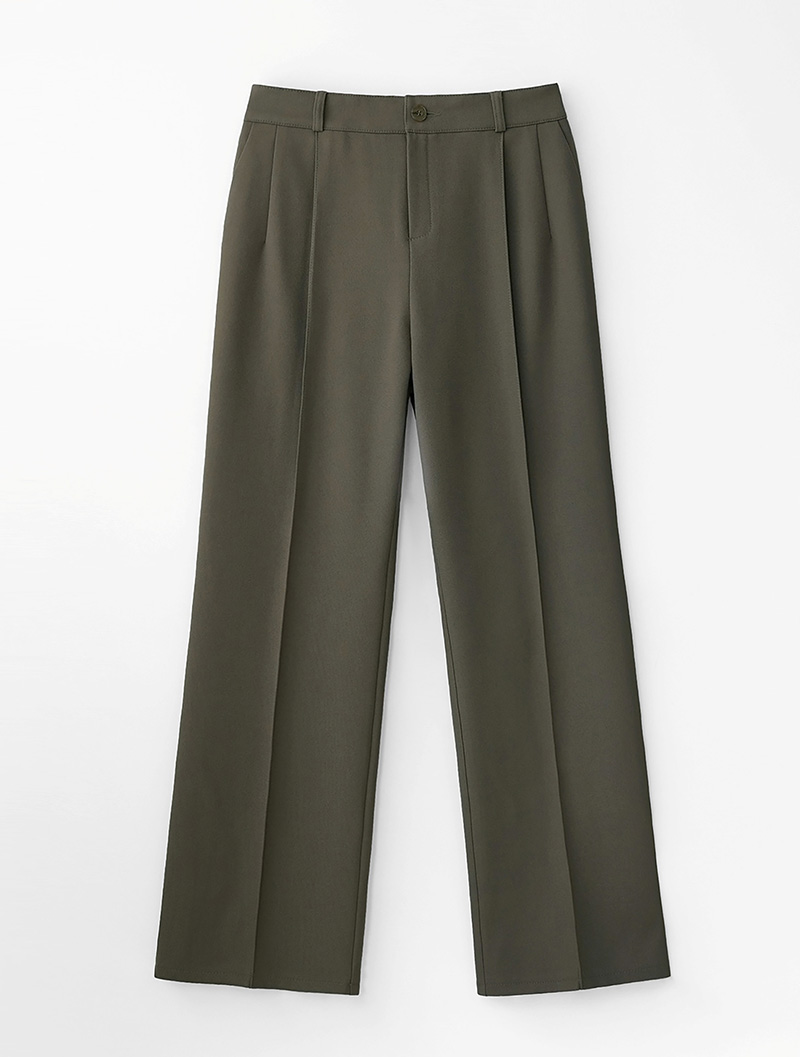 다트 디테일로 깔끔하게 다듬은 원턱 실루엣입니다.