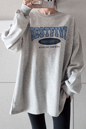 레터링 프린트 오버핏 맨투맨 롱티셔츠