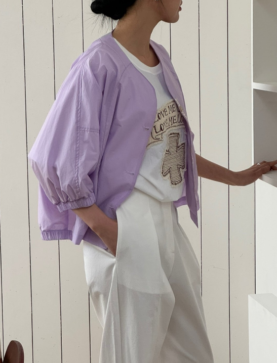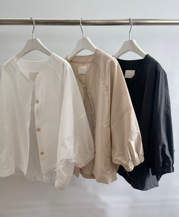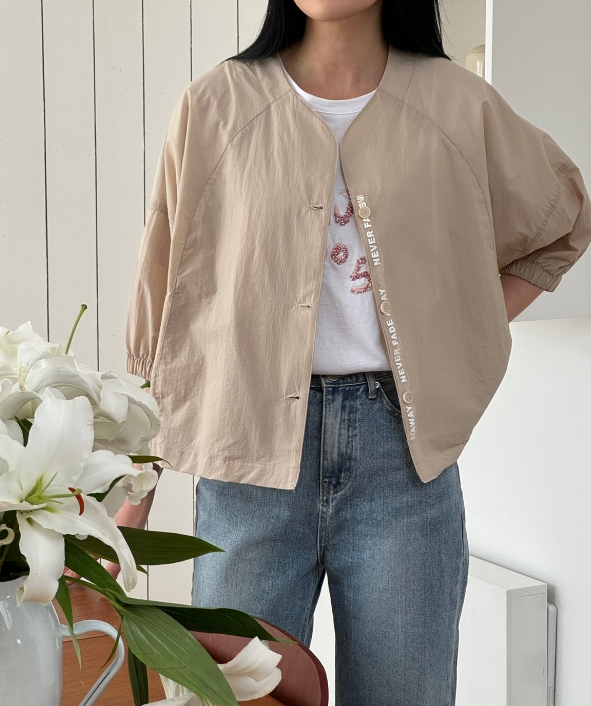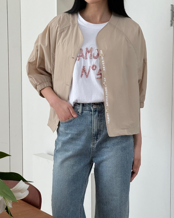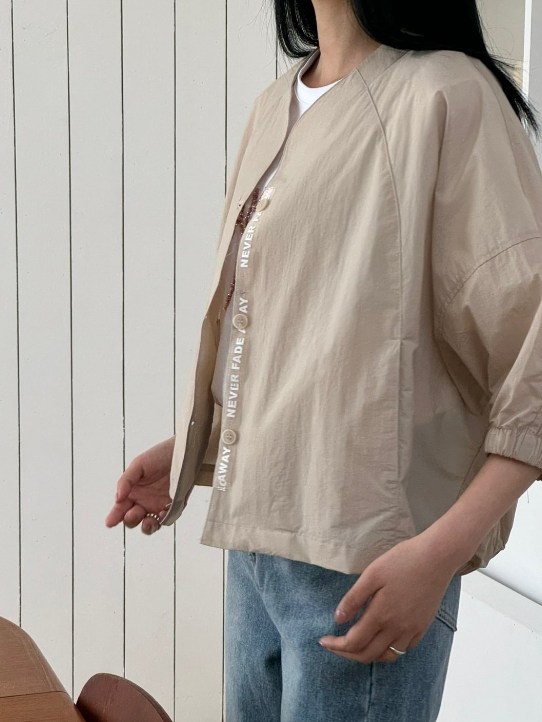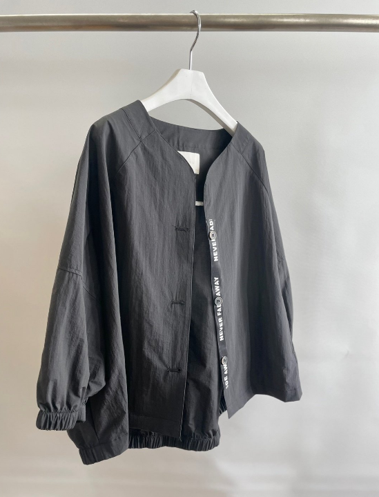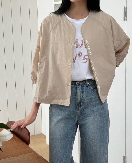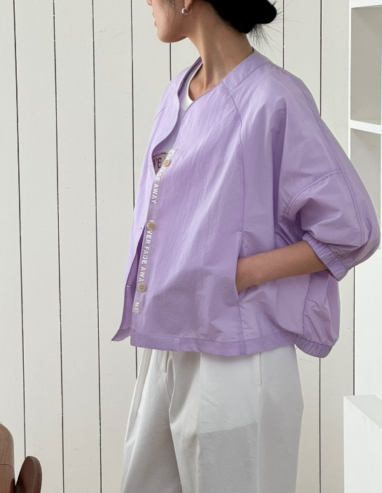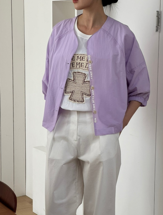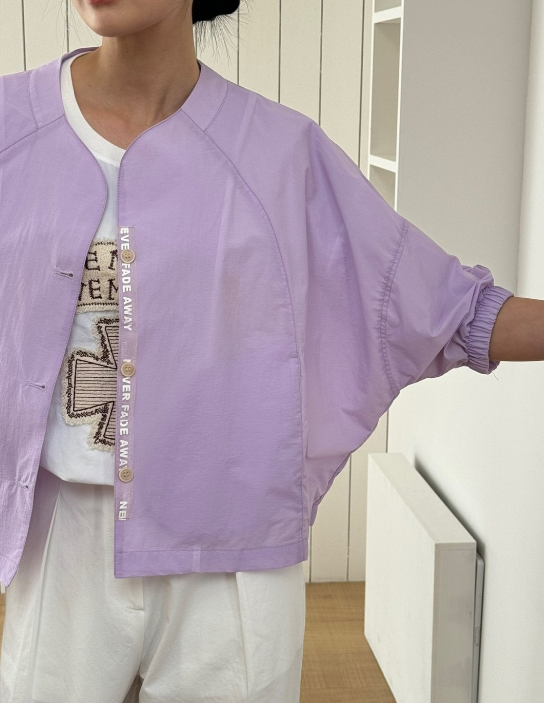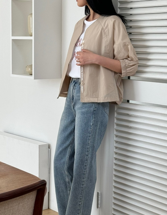 깔끔한 노칼라 디자인의 바람박이 재킷
