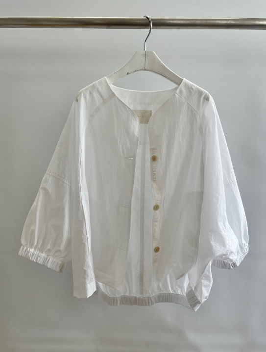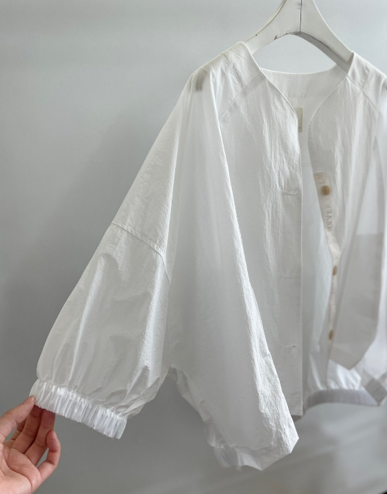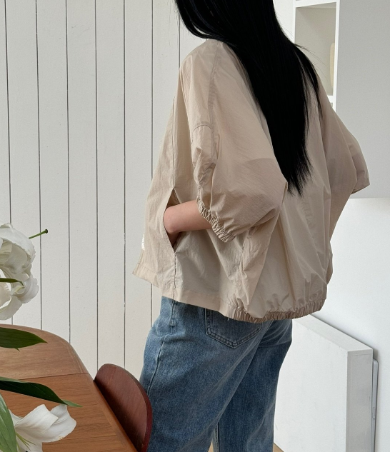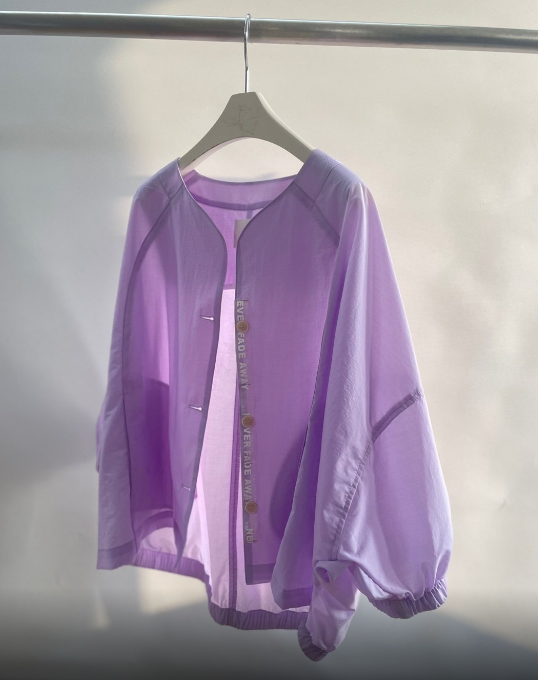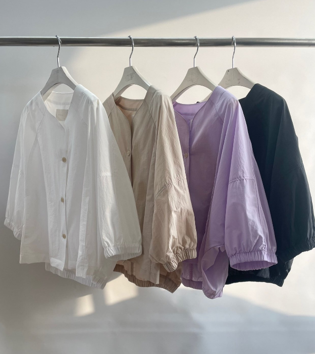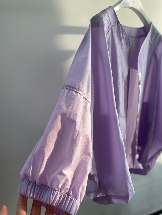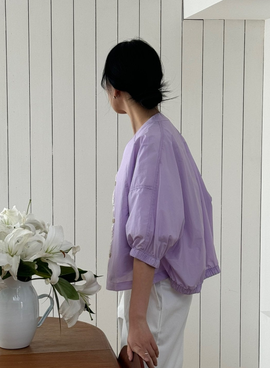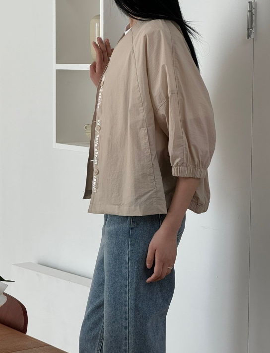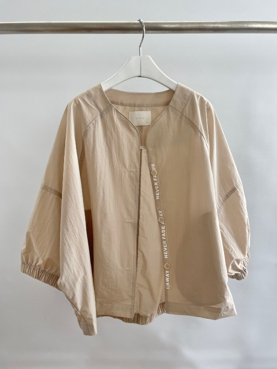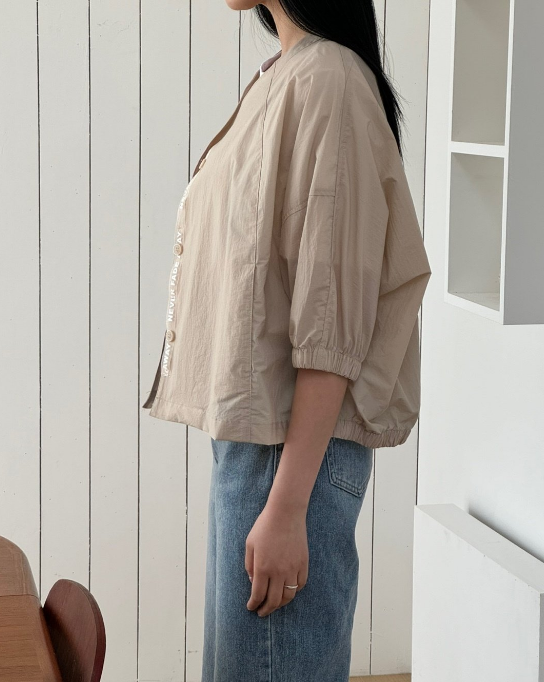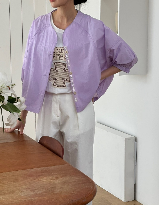 깔끔한 노칼라 디자인의 바람박이 재킷