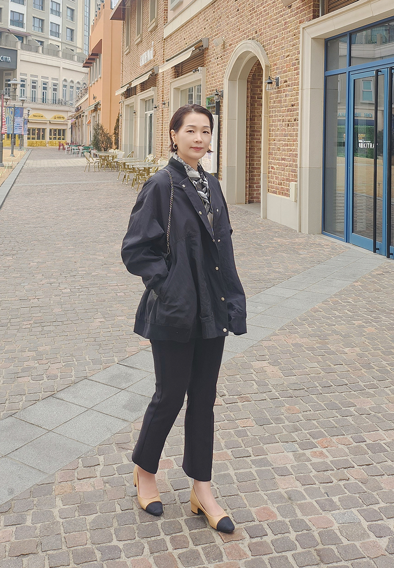 드레시하면서 세련된 꾸안꾸 스타일의 블루종