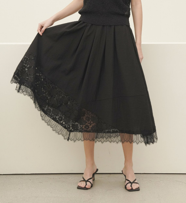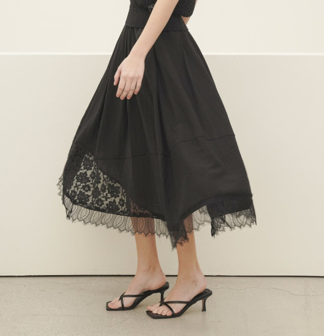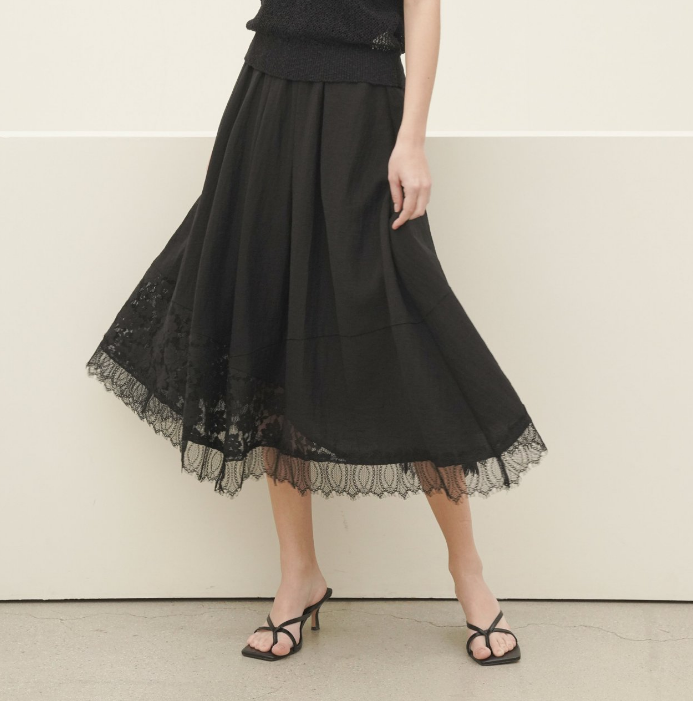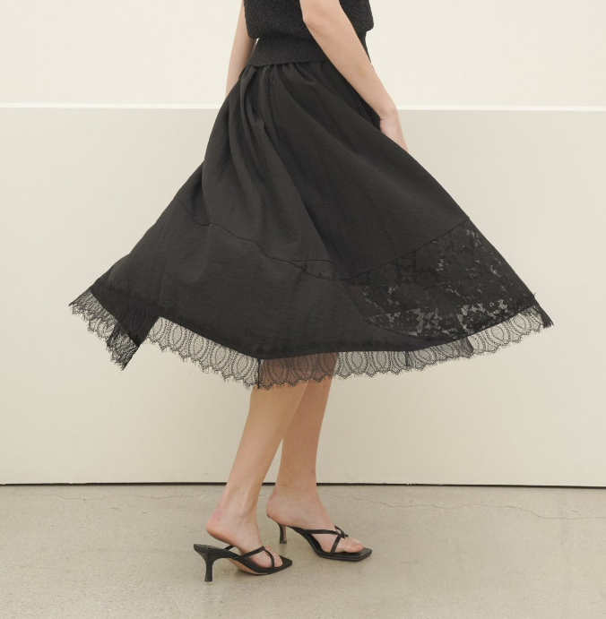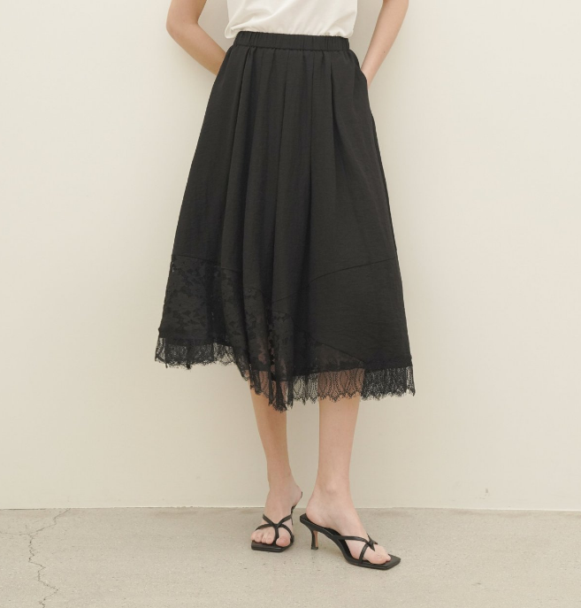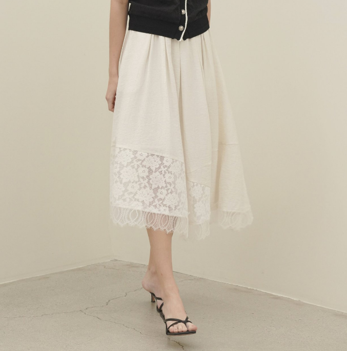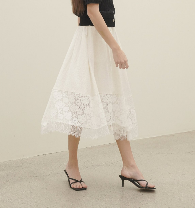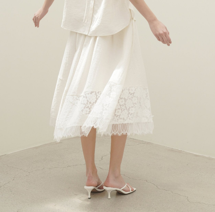 -치마폭을 넓게 가공하고 레이스로 포인트.