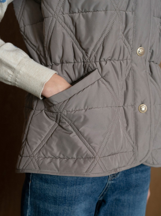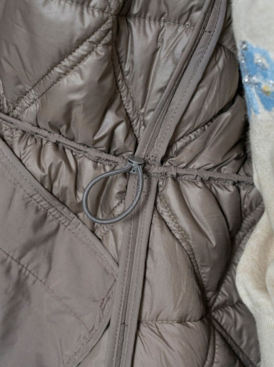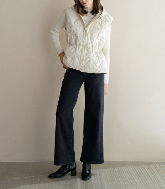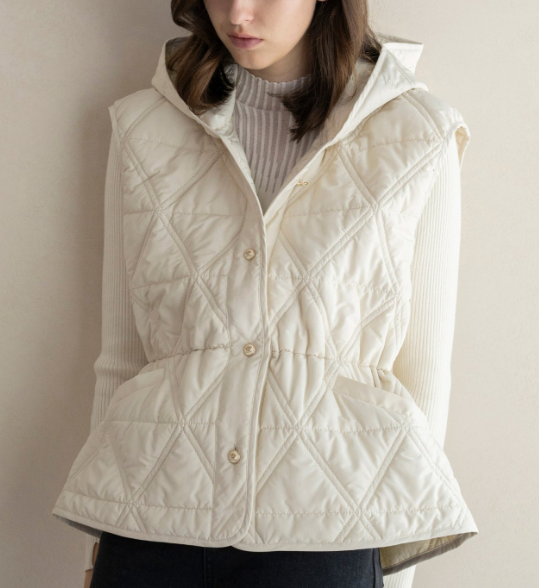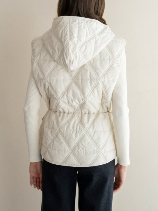 고급스런 스티치 디테일의 후드 패딩 조끼예요.