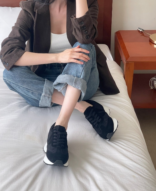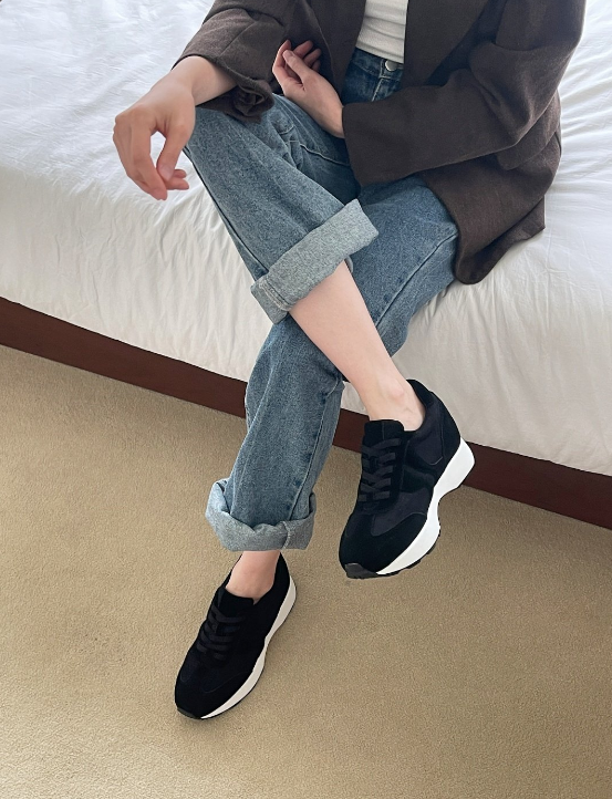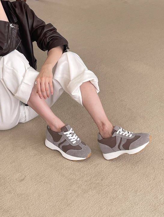 SHO151 [7cm/속굽포함]키높이 소가죽 콤비 운동화