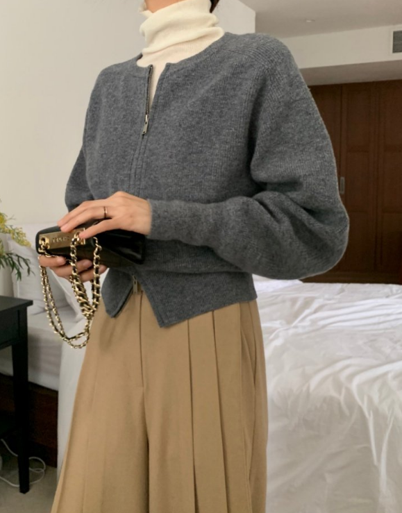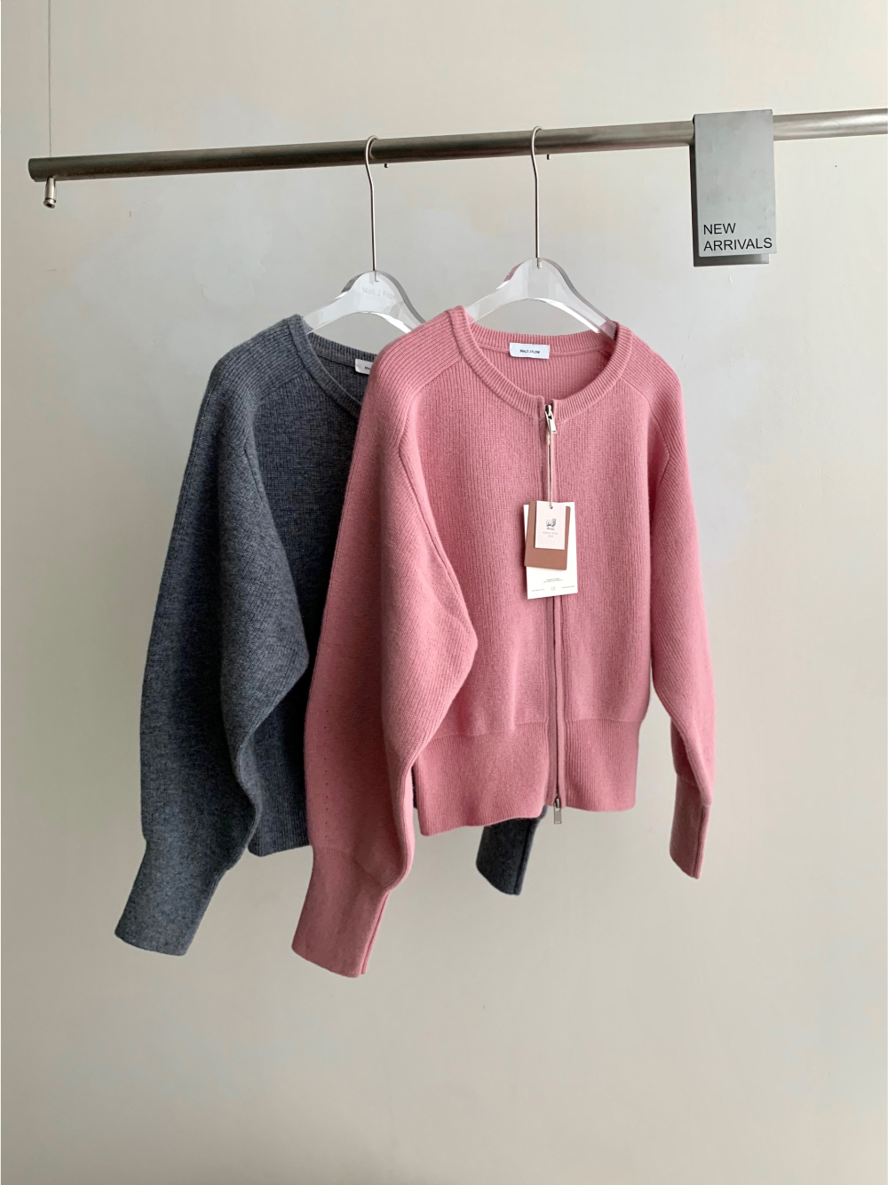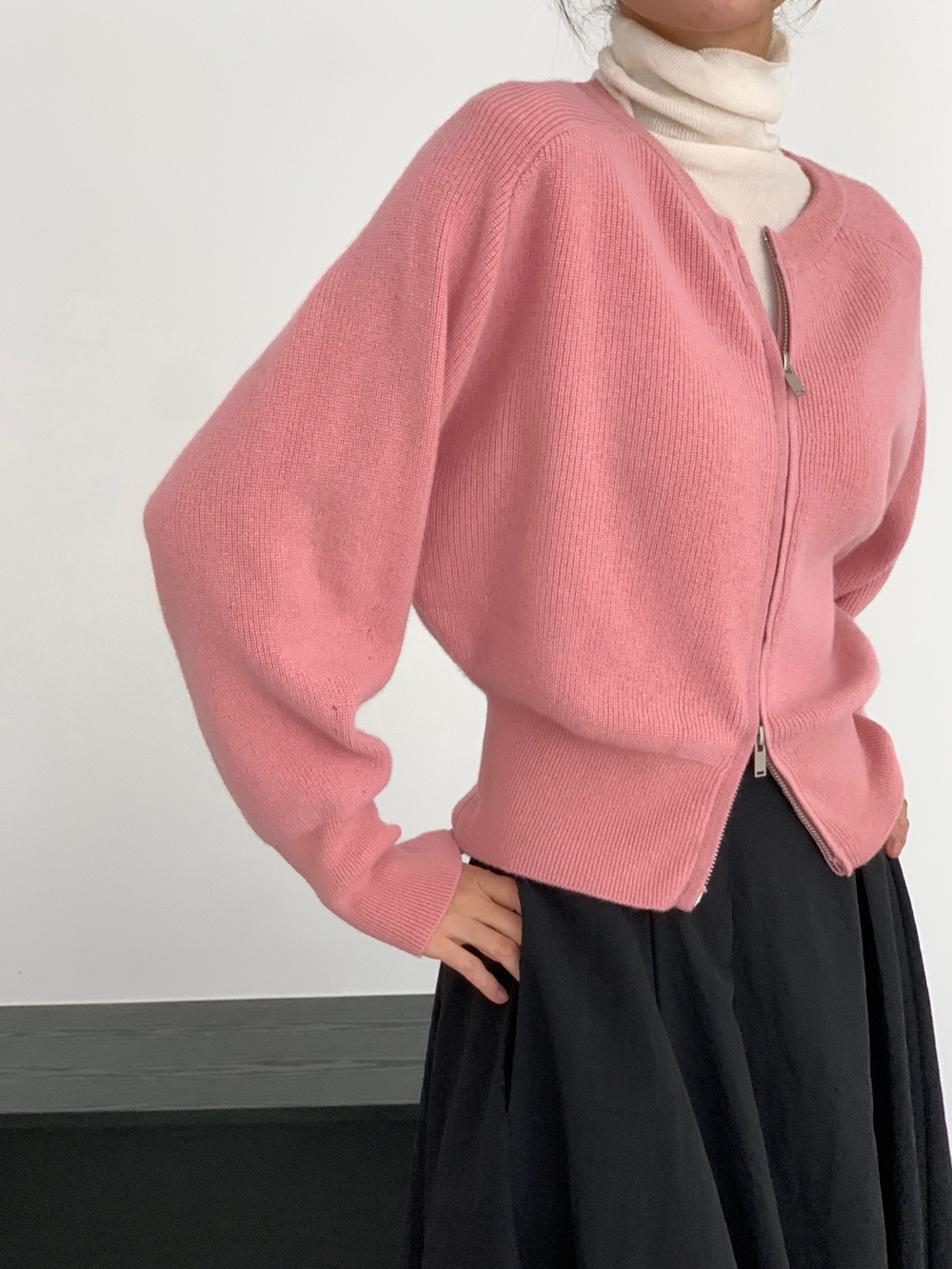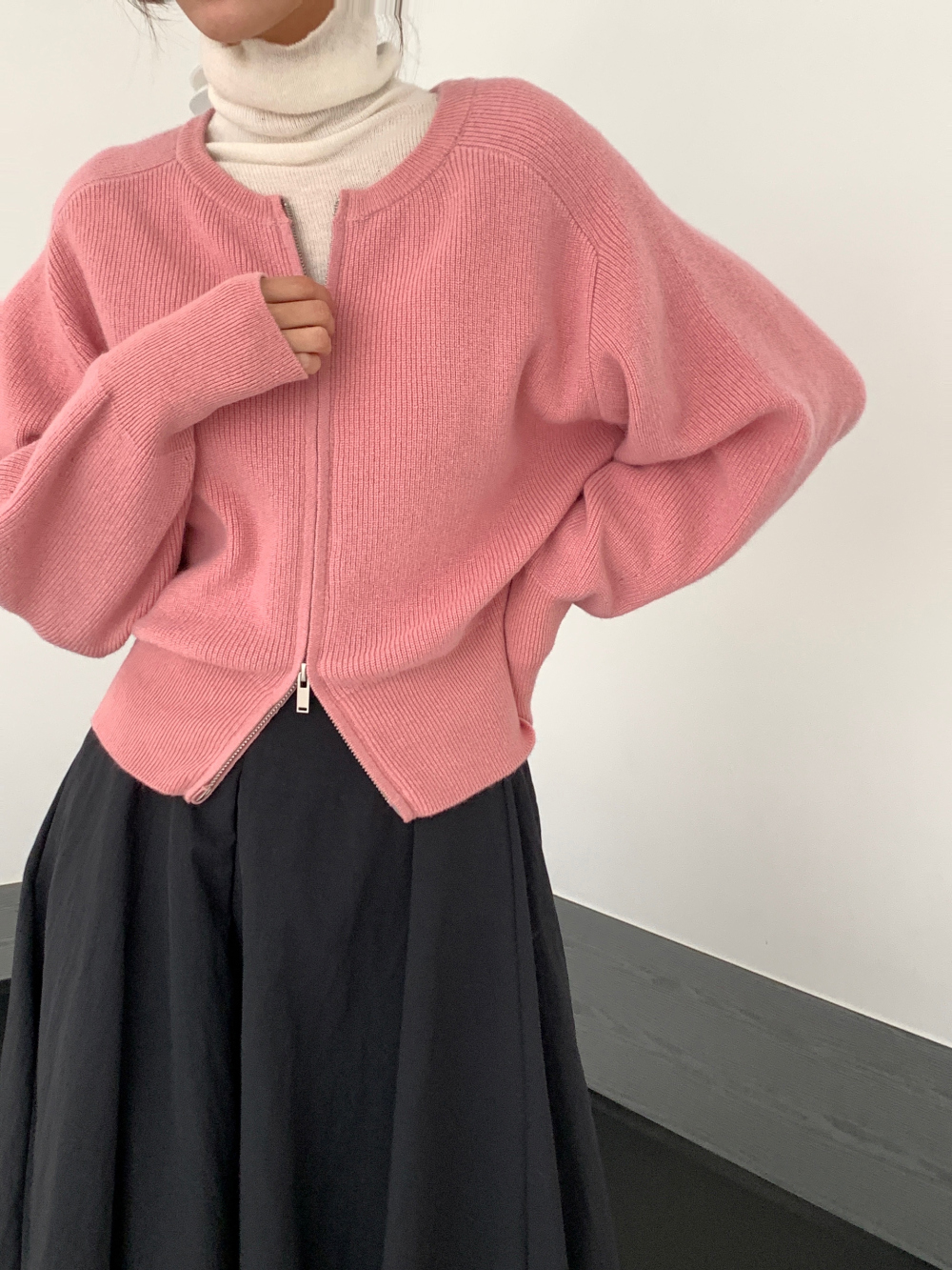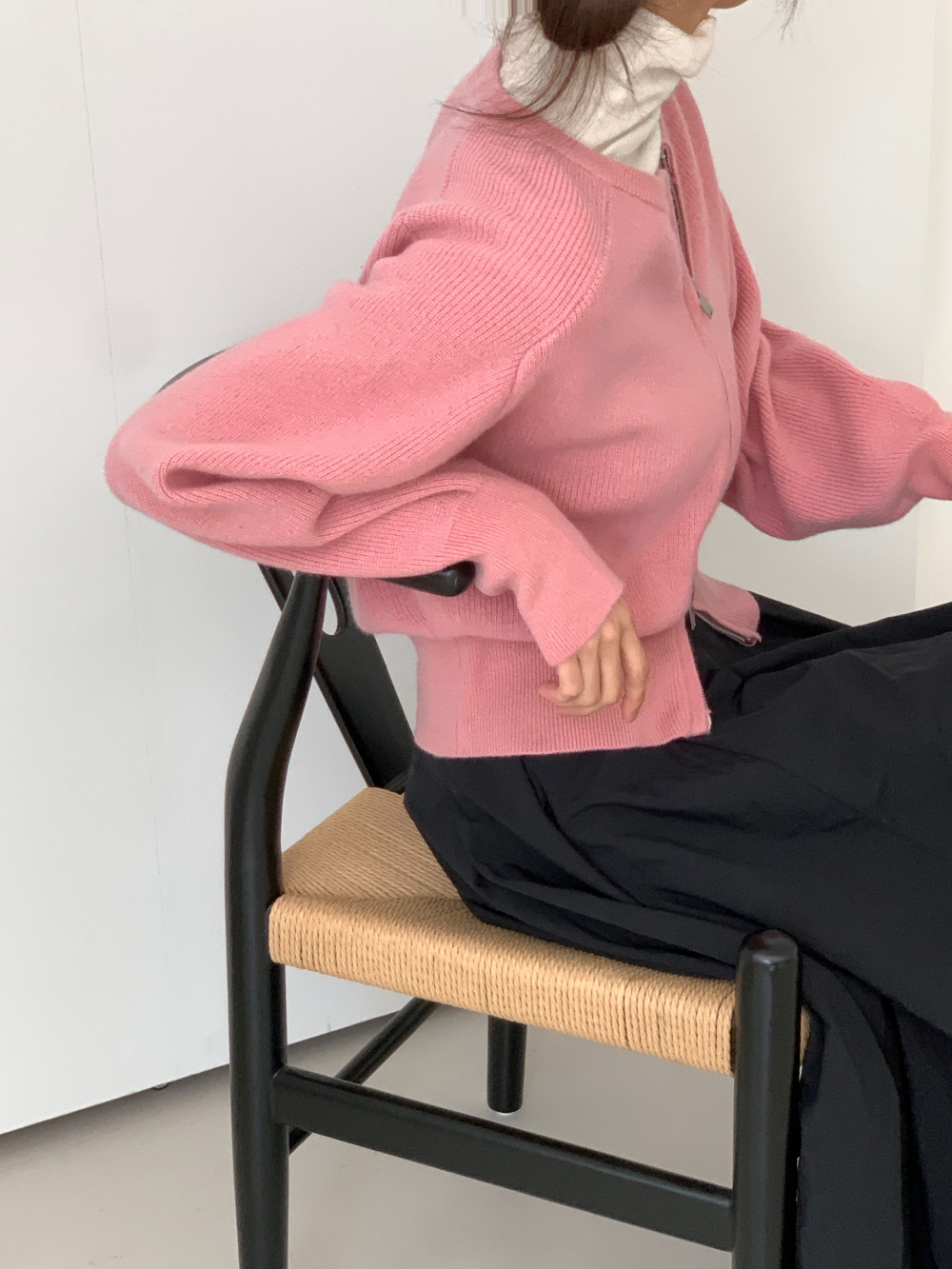 BKT343[수퍼파인 메리노울 100%]볼륨소매 투웨이 짚업 가디건