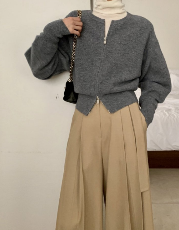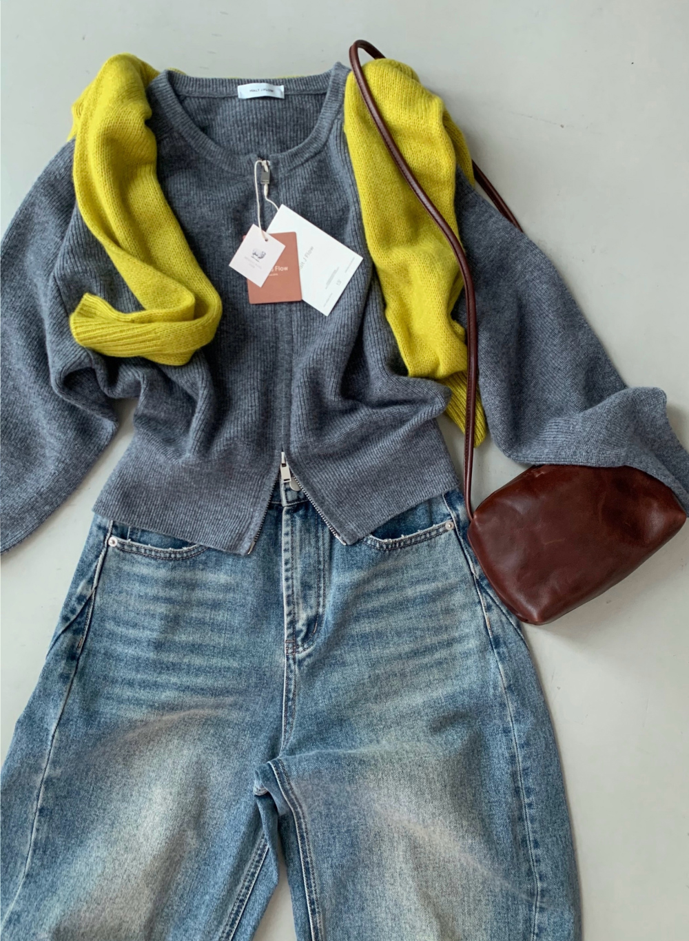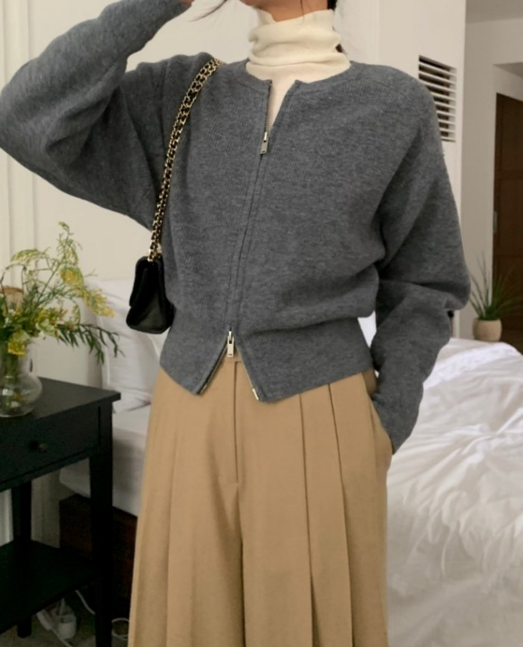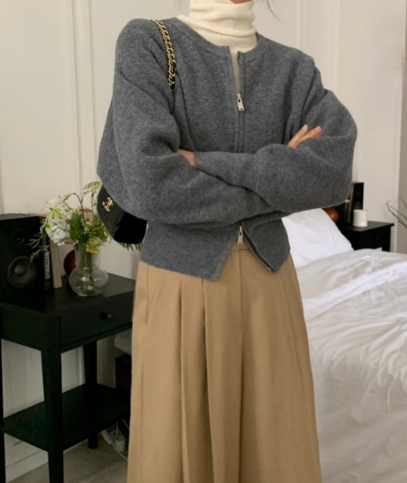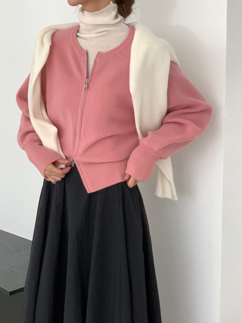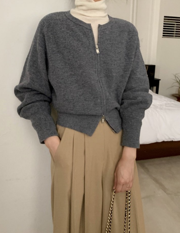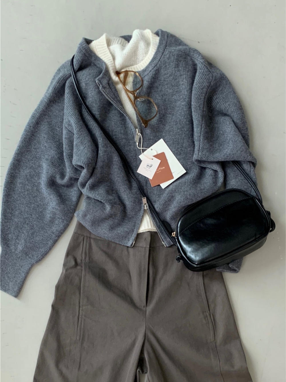 BKT343[수퍼파인 메리노울 100%]볼륨소매 투웨이 짚업 가디건