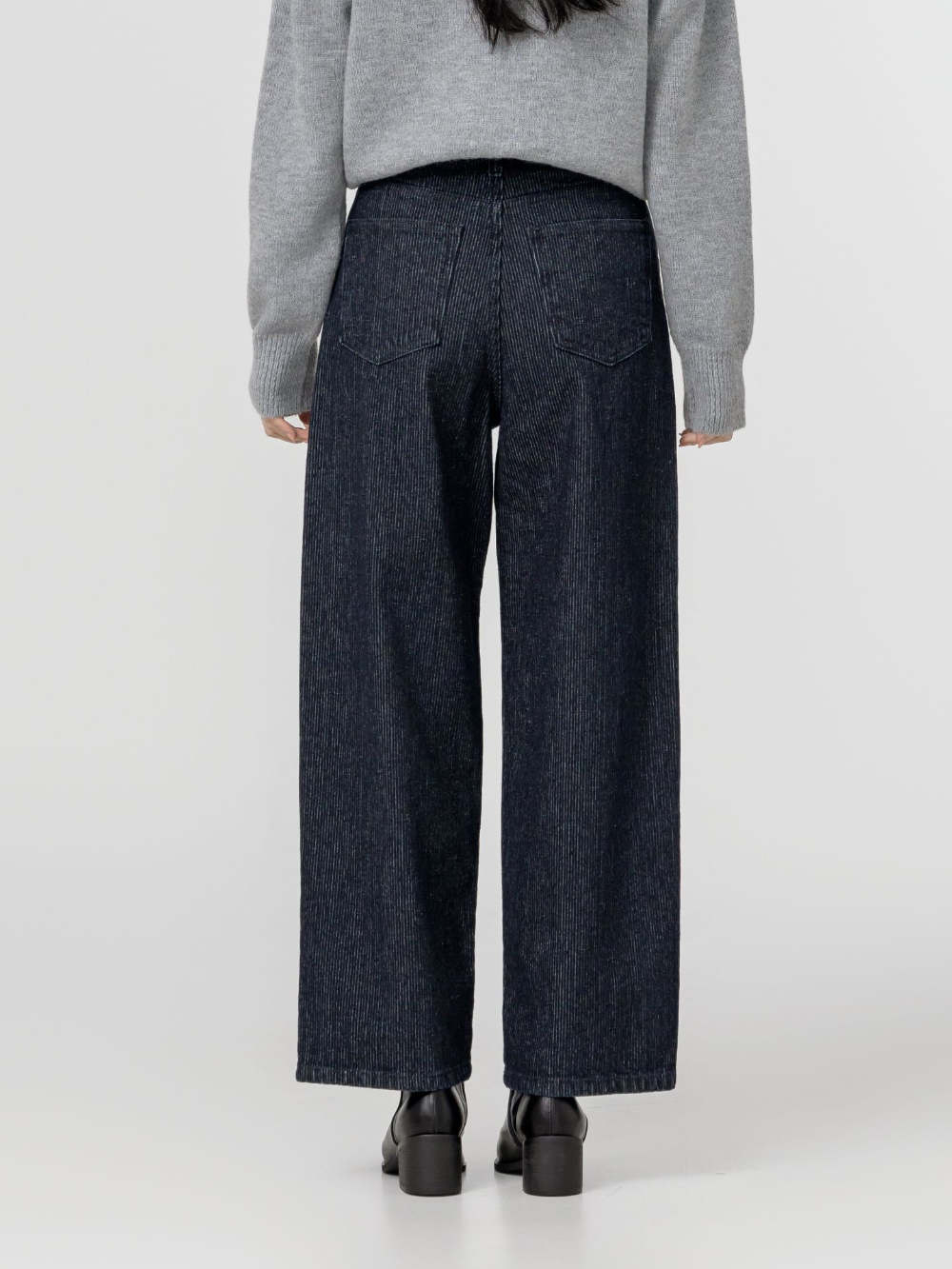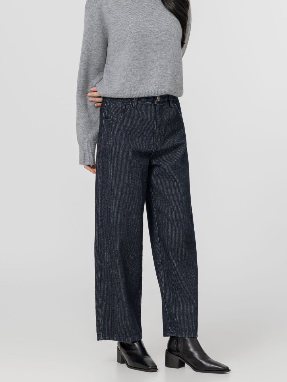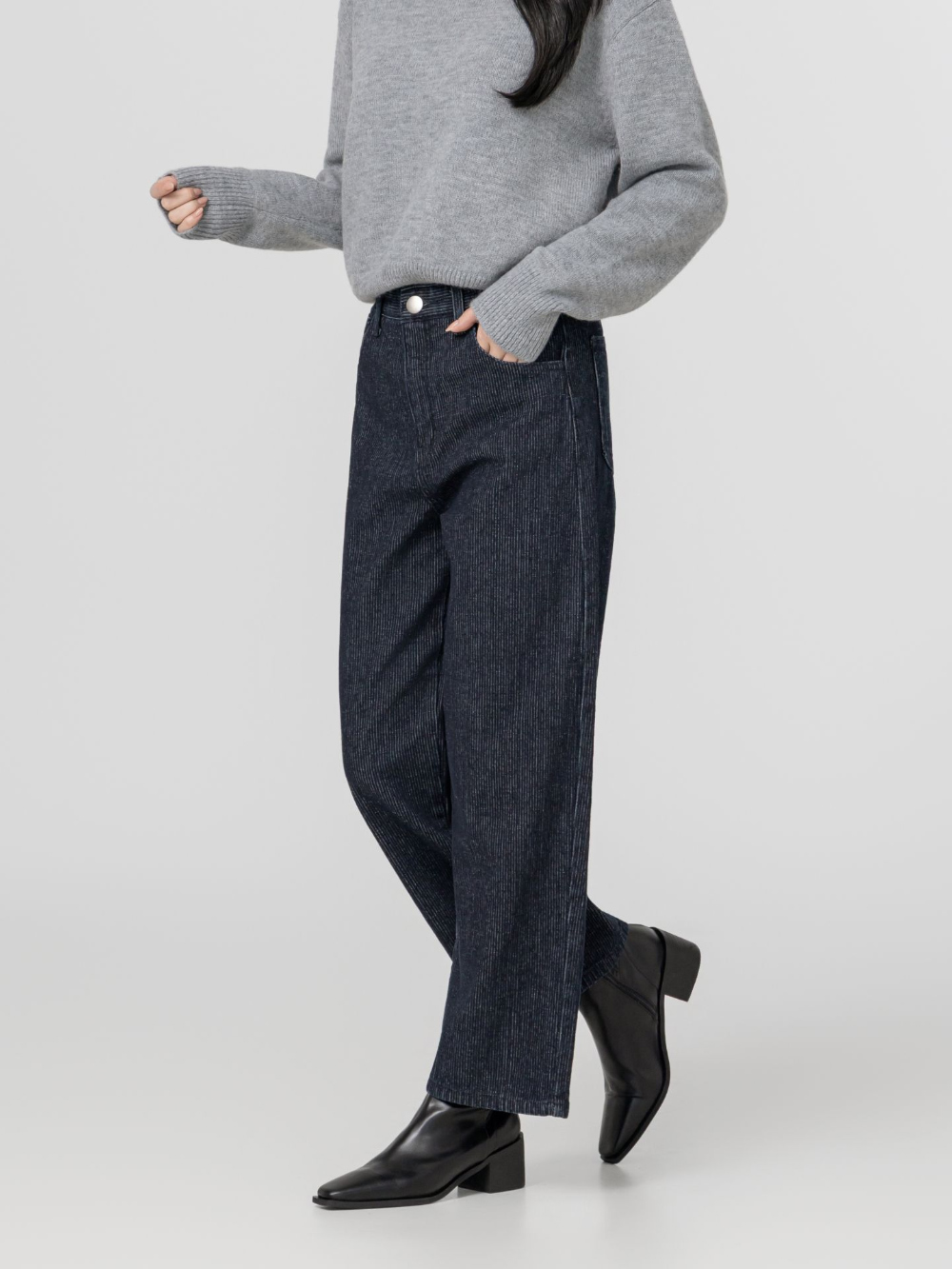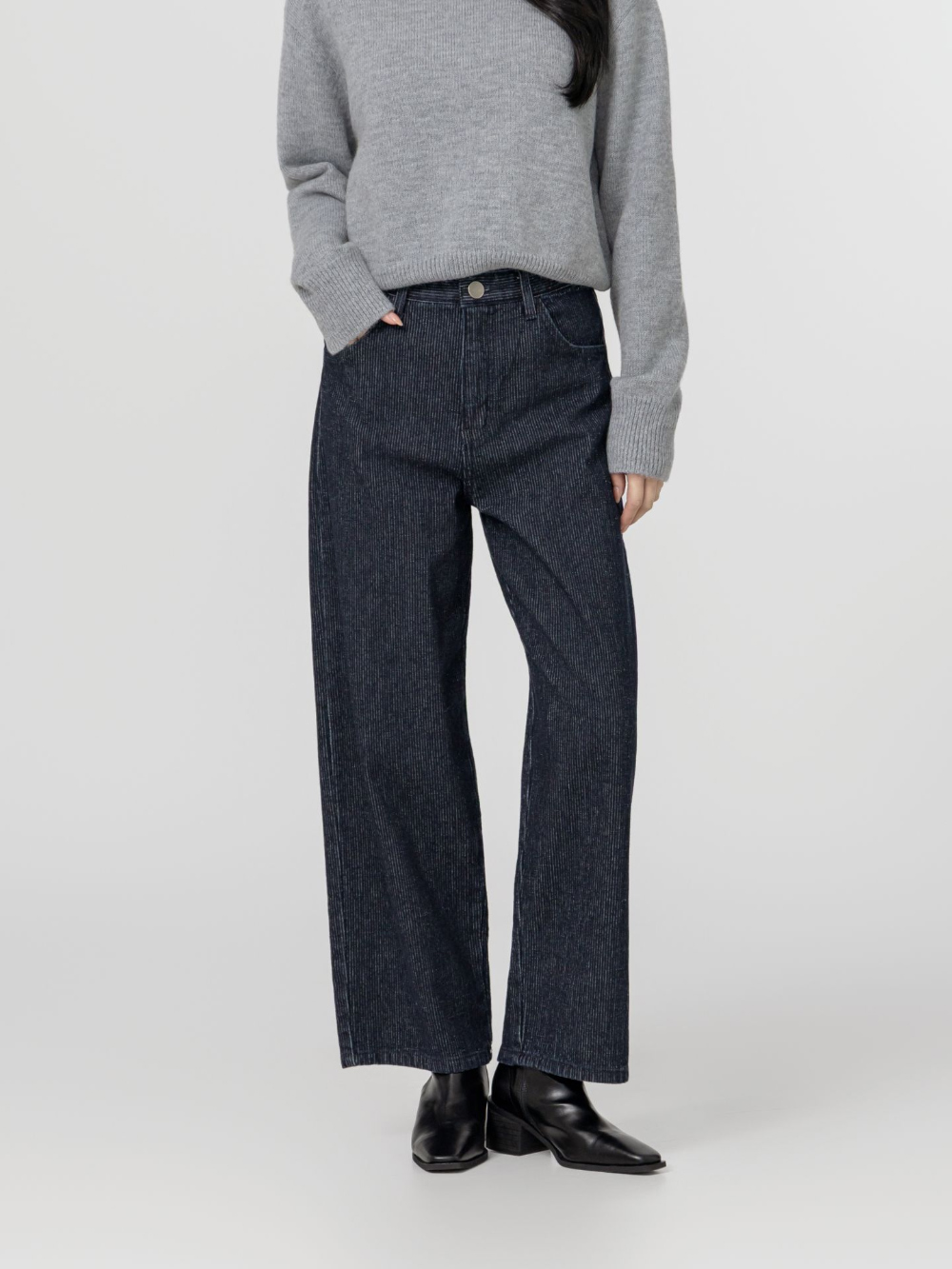 골지 데님 원단으로 만들어진 크롭한 기장감의