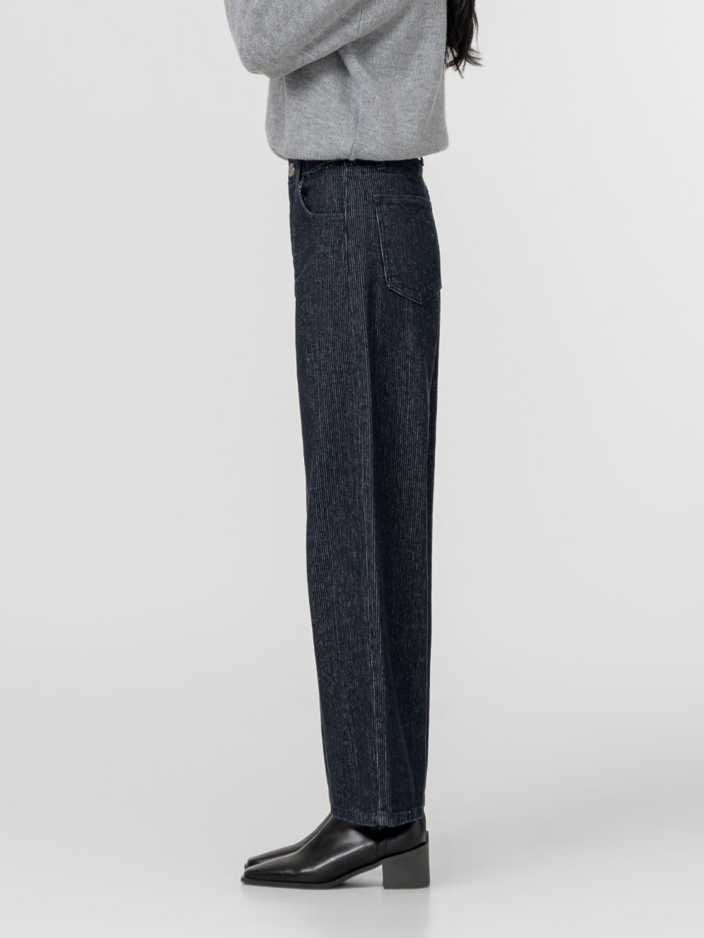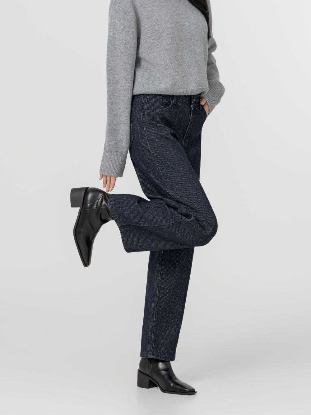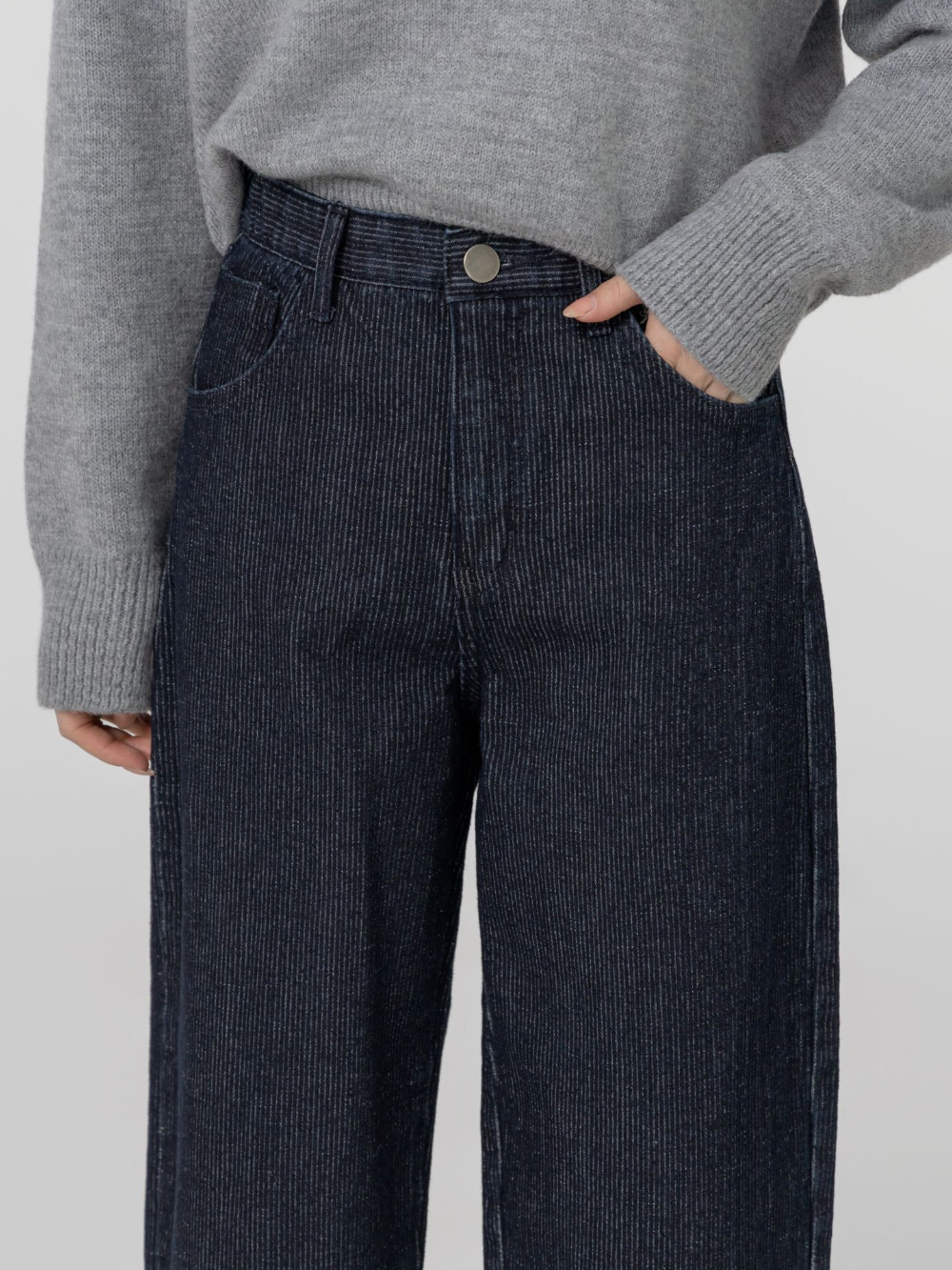 골지 데님 원단으로 만들어진 크롭한 기장감의