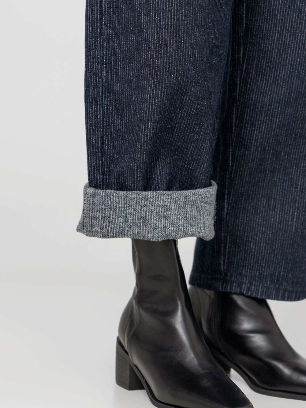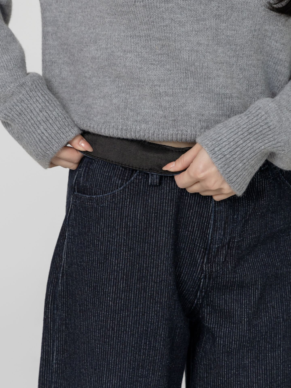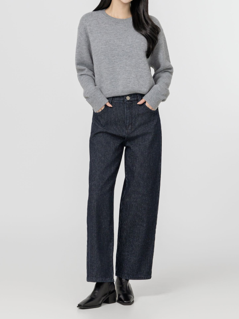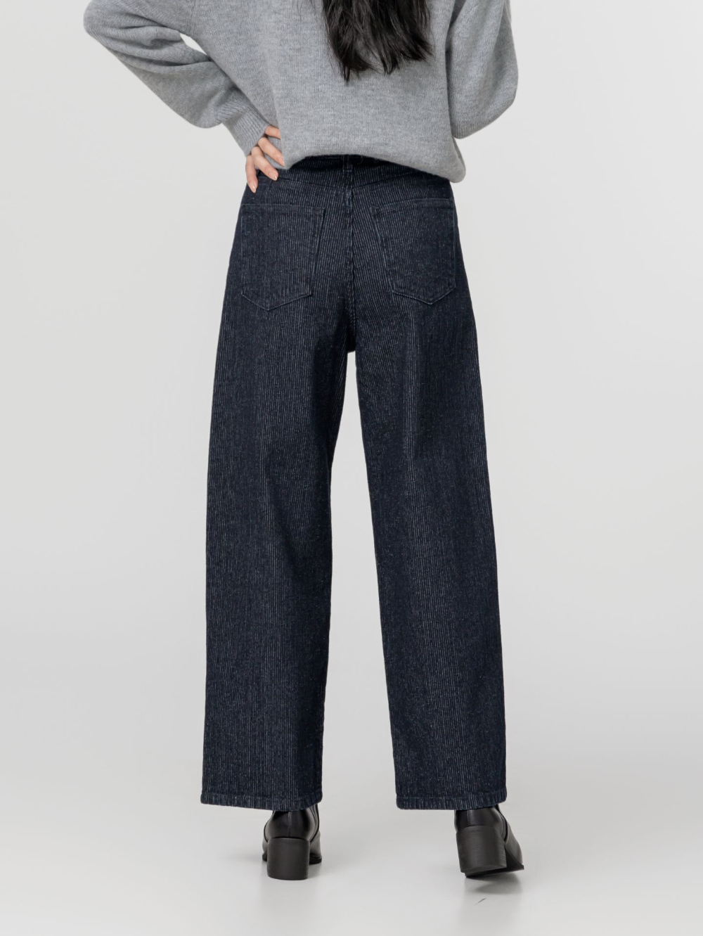골지 데님 원단으로 만들어진 크롭한 기장감의