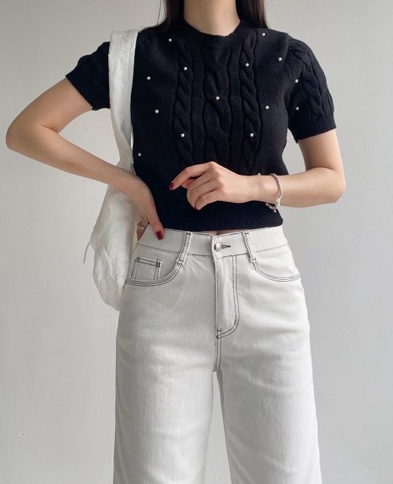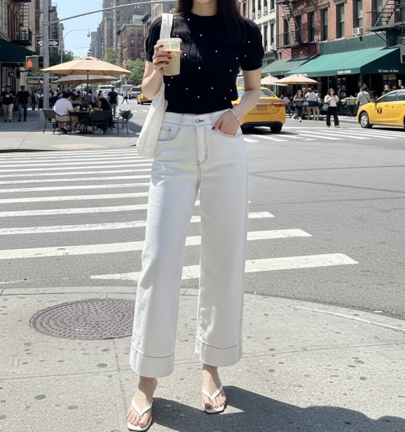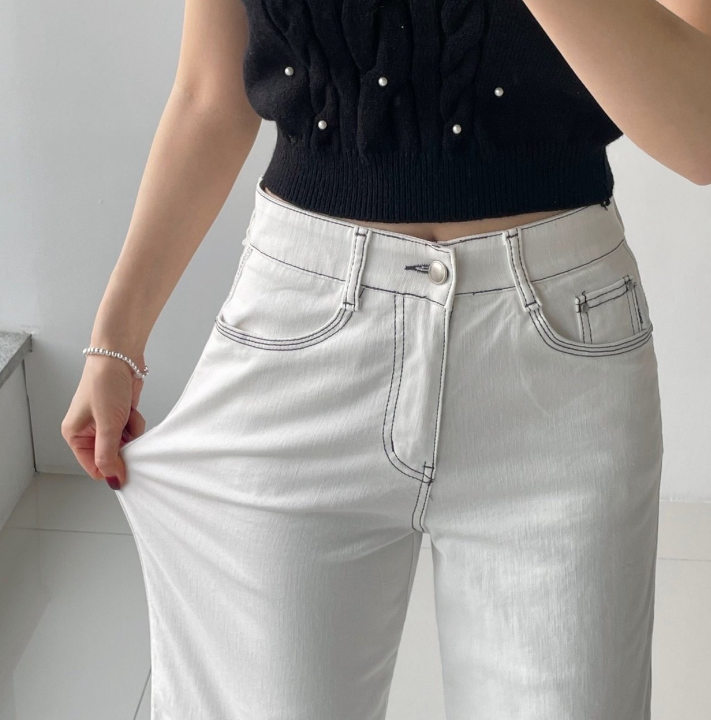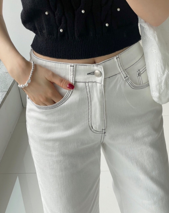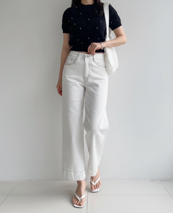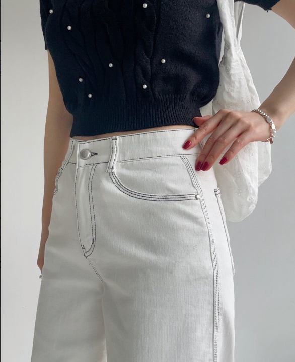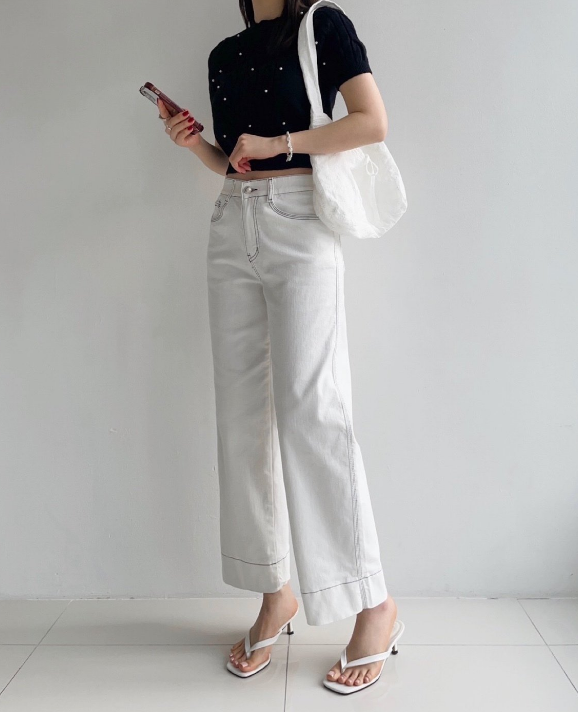 BSL390[봄신상 ] 스티치 포인트 밴딩 크롭 데님 와이드 9부 팬츠