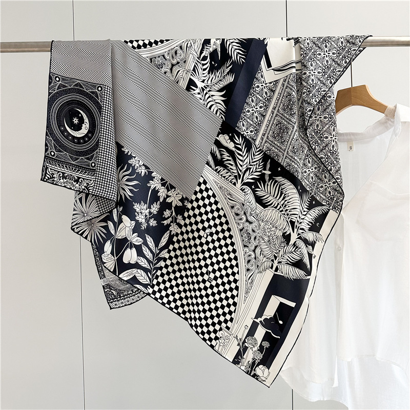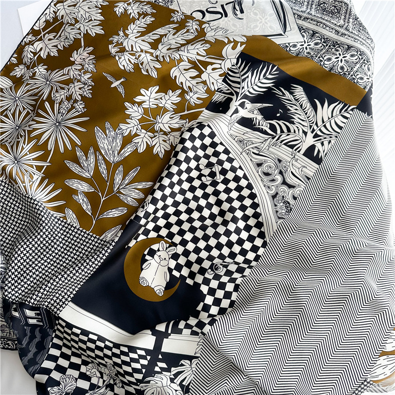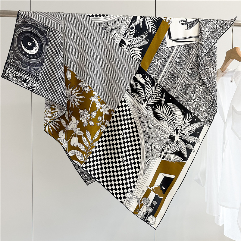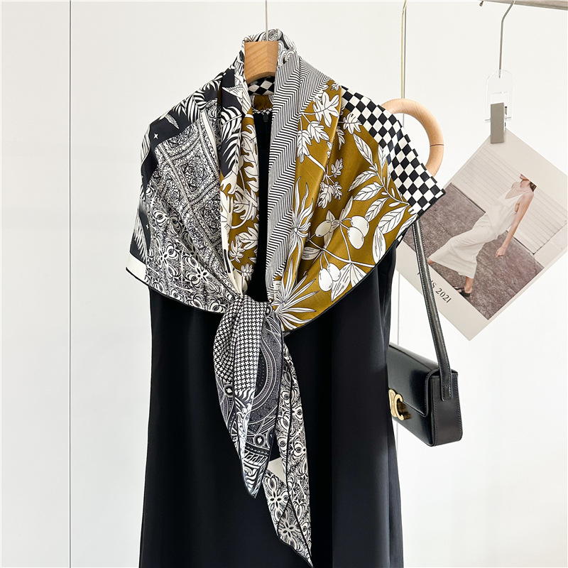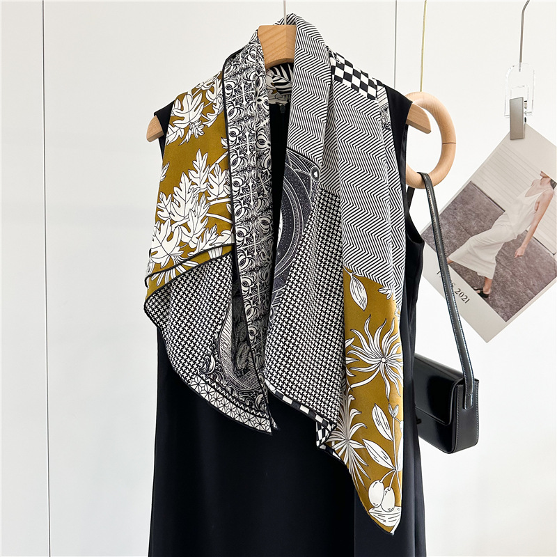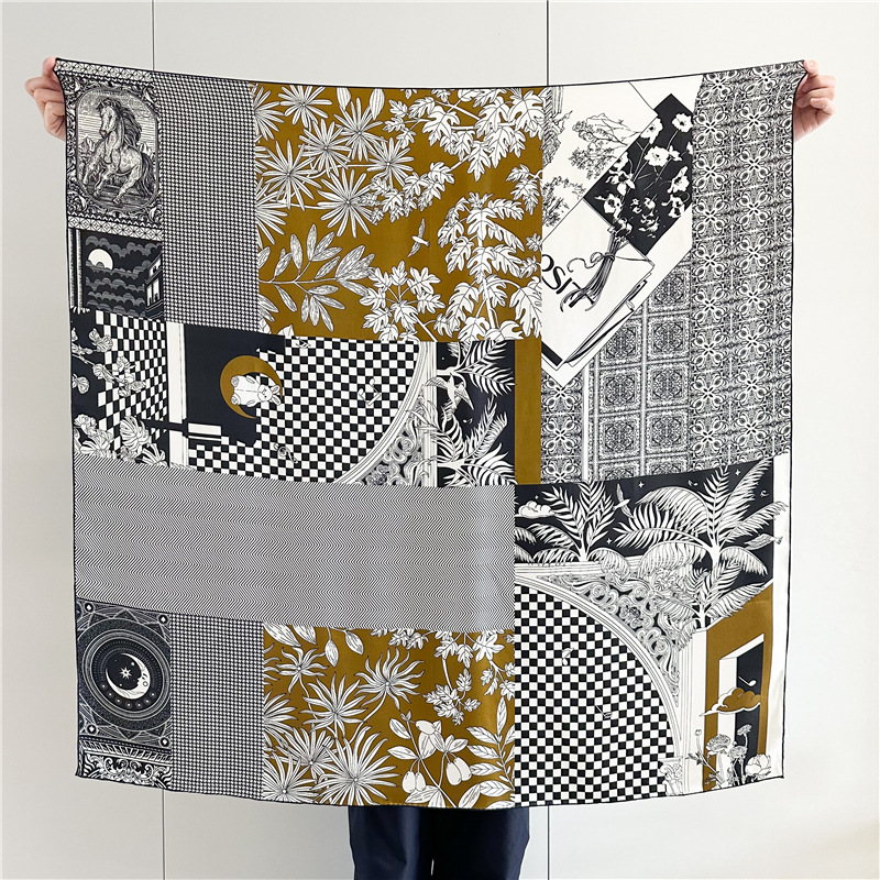 고급스러운 16뮴 실크 패치워크 디자인 스카프