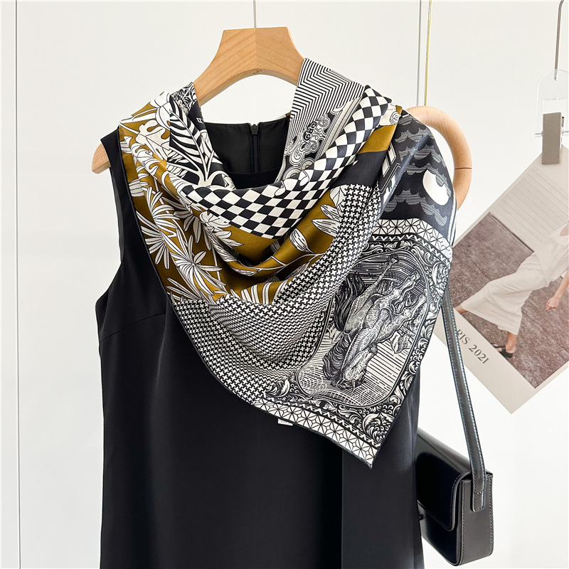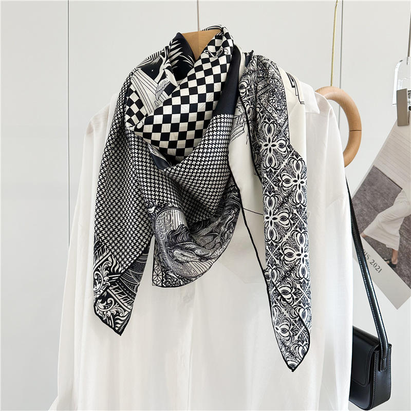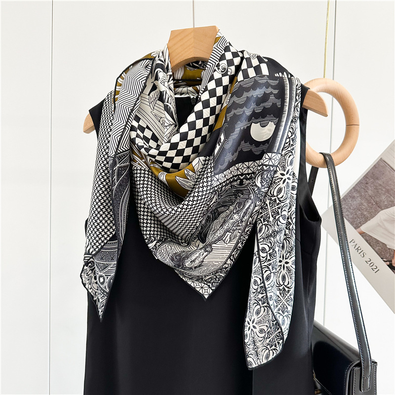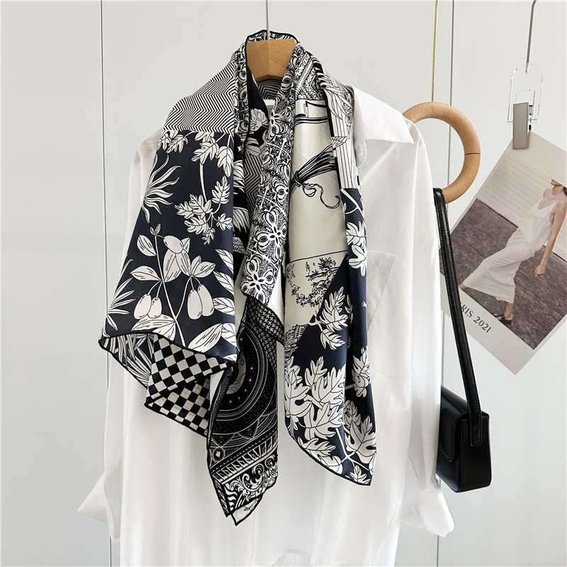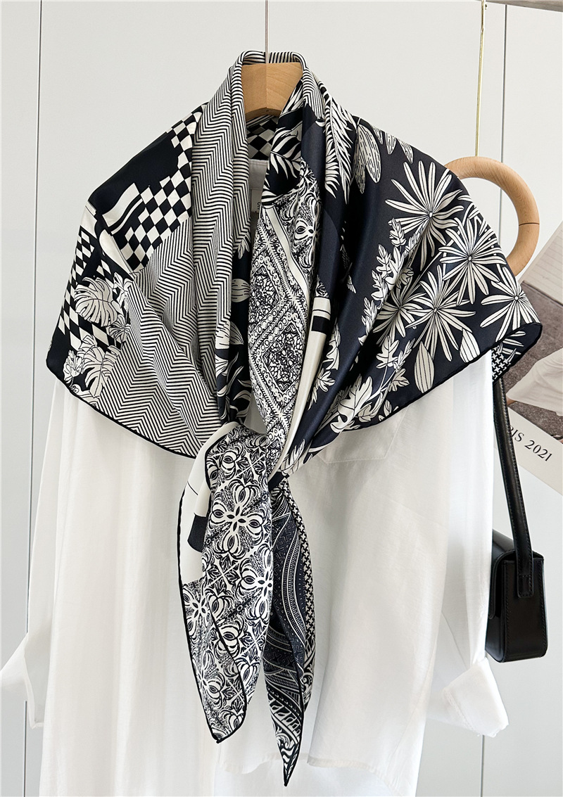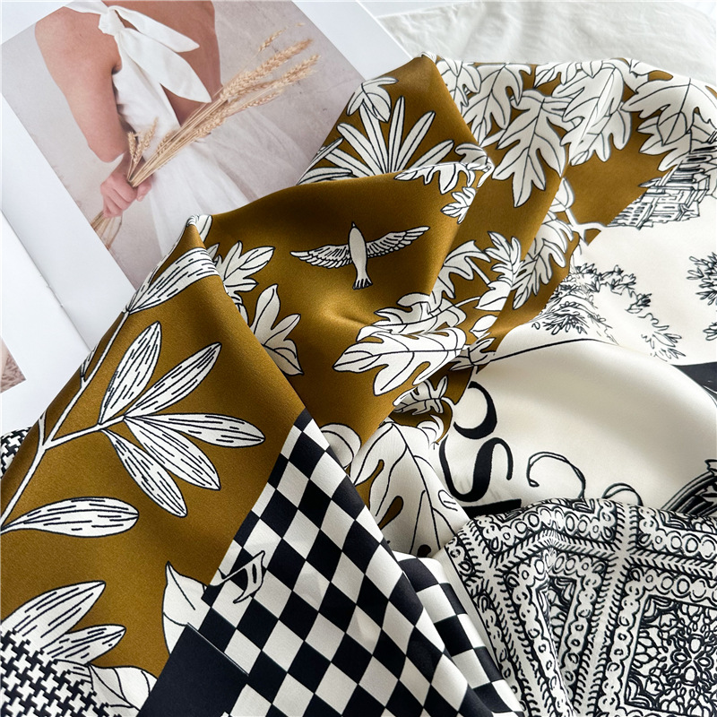 고급스러운 16뮴 실크 패치워크 디자인 스카프