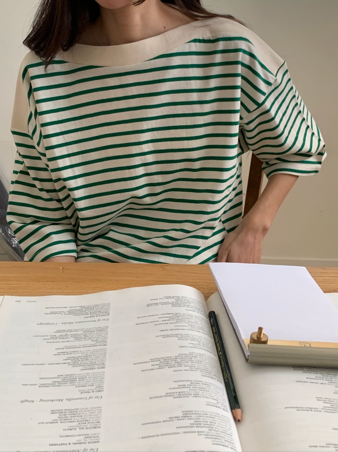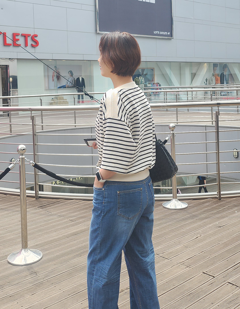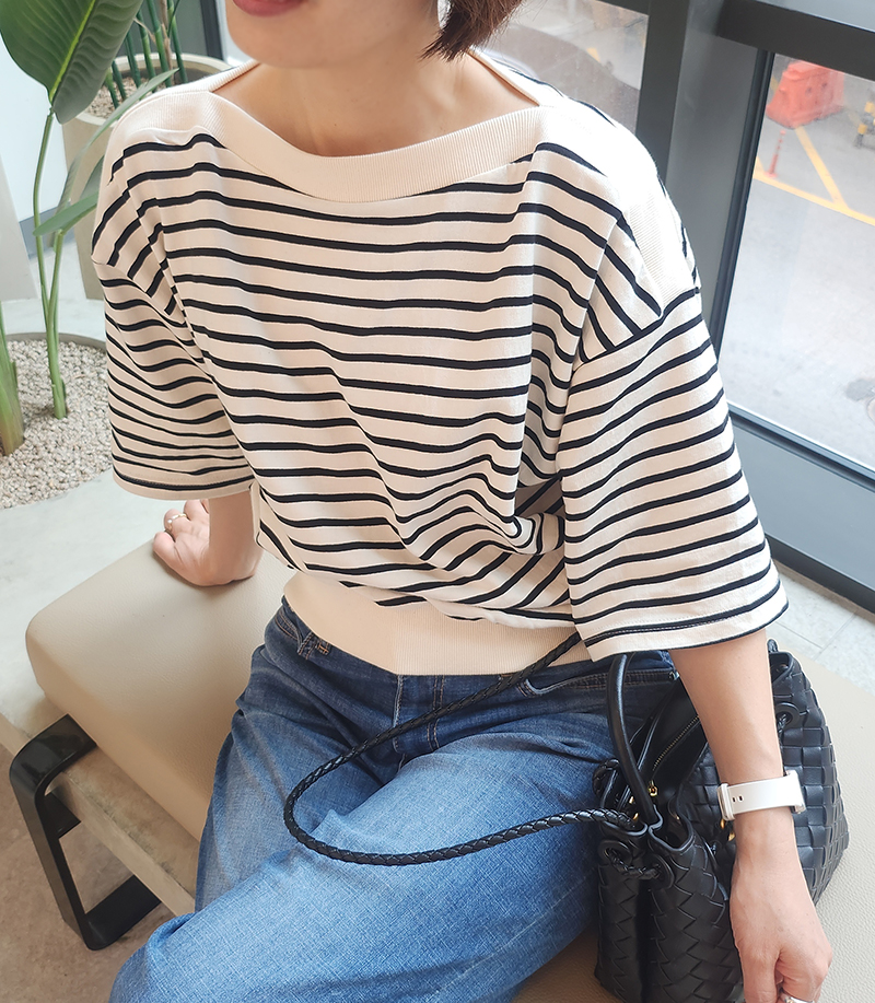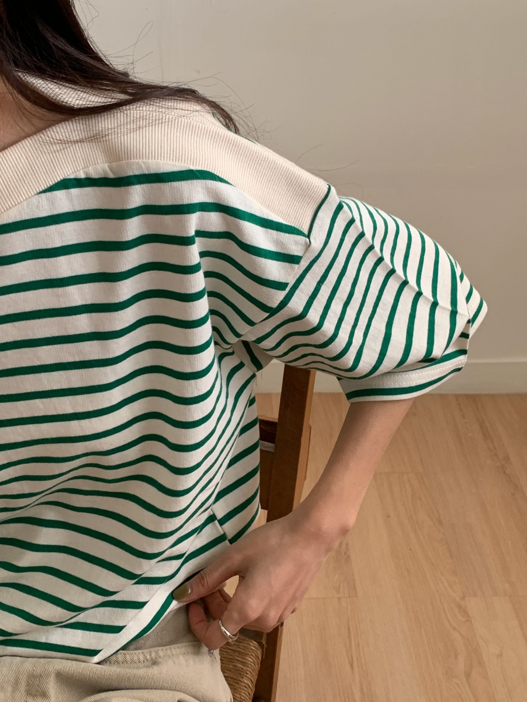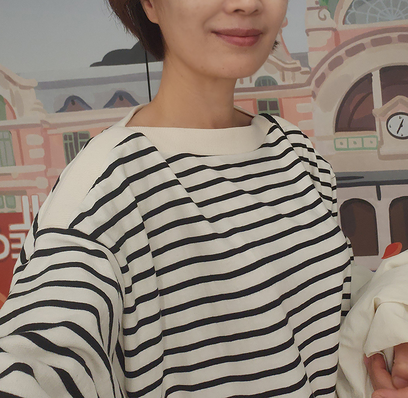 BTS310 시보리배색 단가라 쭈리 티셔츠