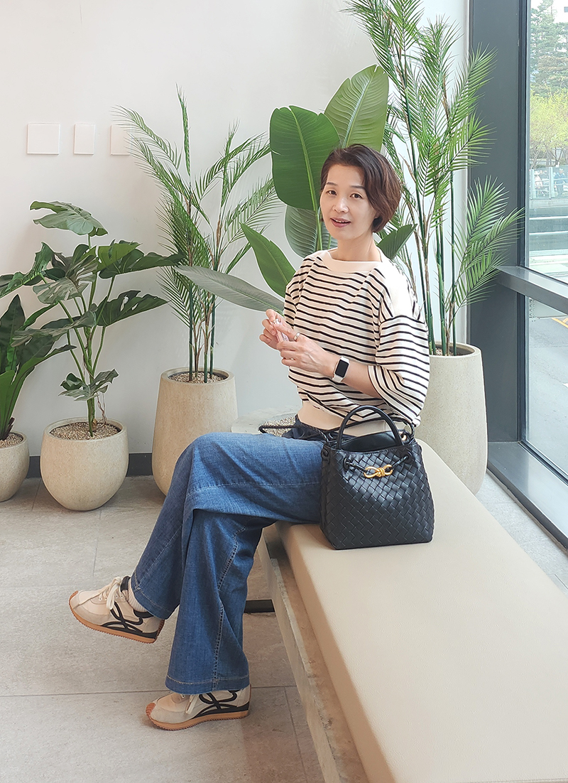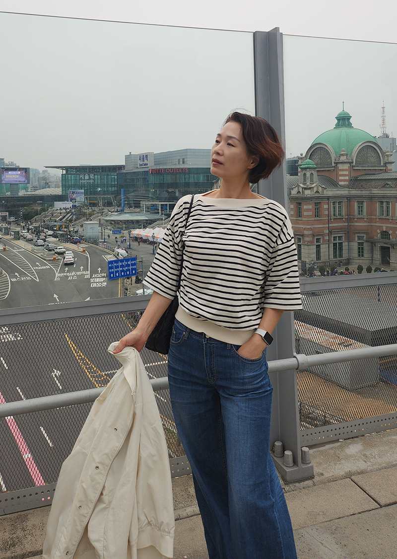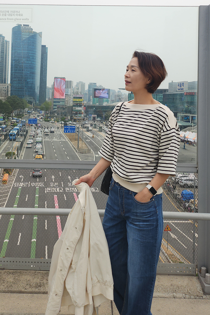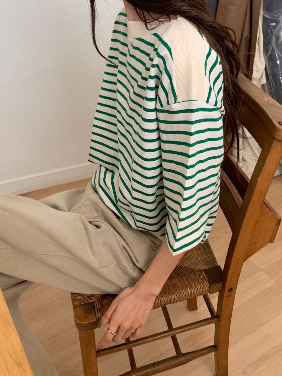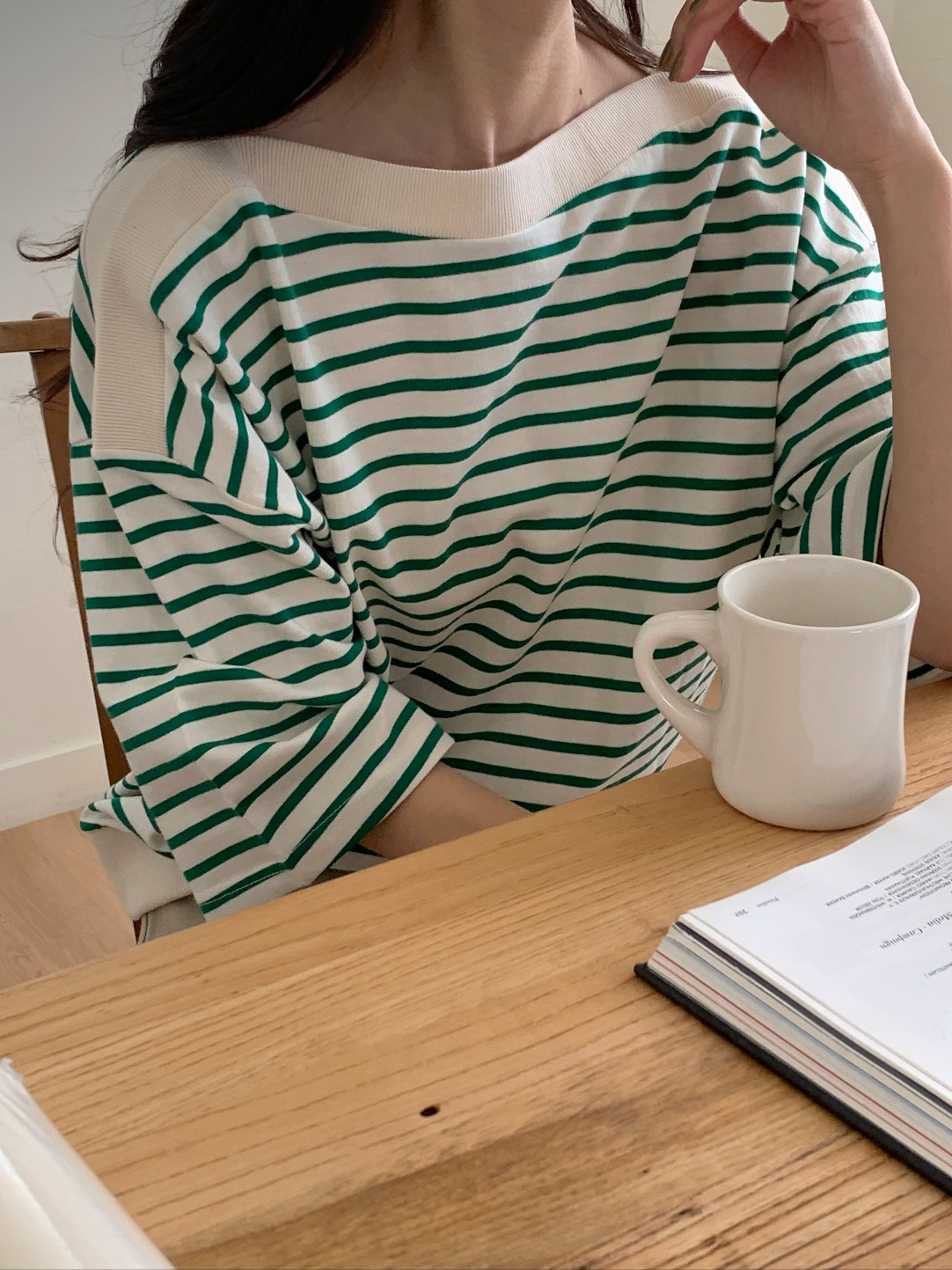 BTS310 시보리배색 단가라 쭈리 티셔츠
