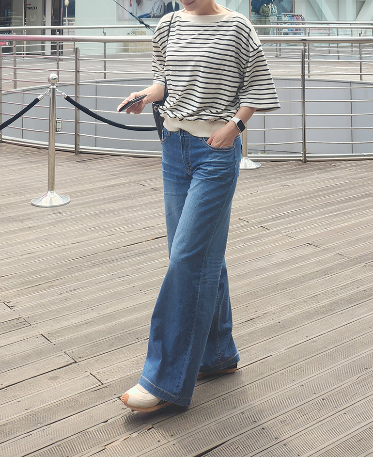 B51_BSL332 [허리전체숨은밴딩]린넨스판 중청 일자핏 청바지/L(66)