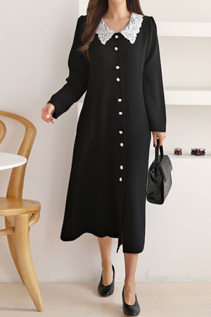 BOP201 [봄신상] 레이스카라 클래식 배색 원피스