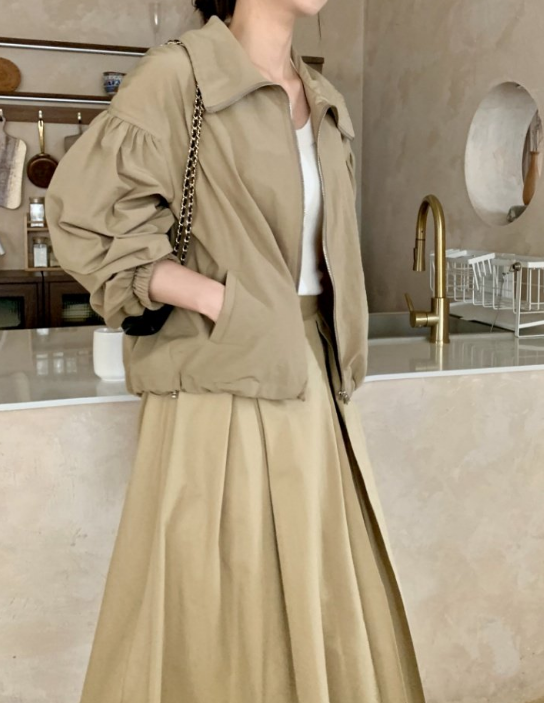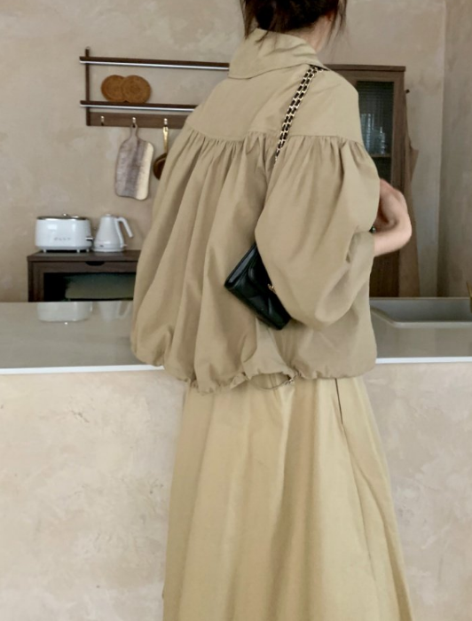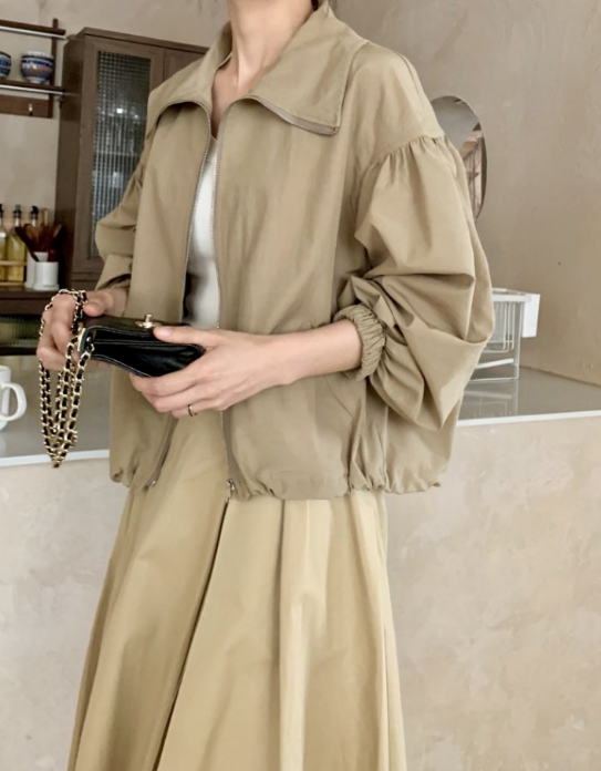 풍성한 소매 실루엣이 여성스러운 무드를 완성해줘요