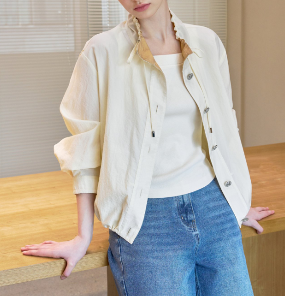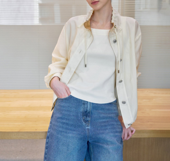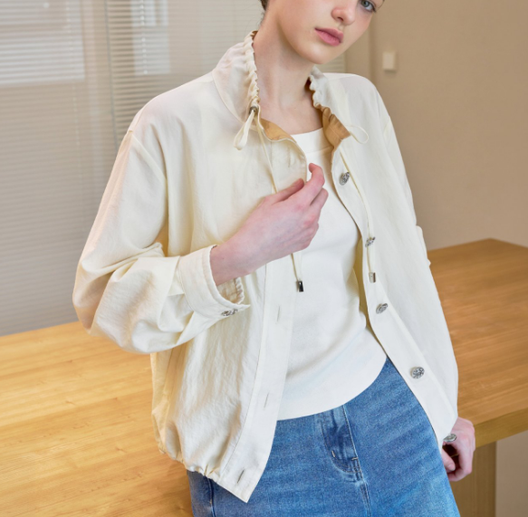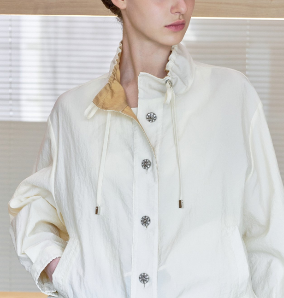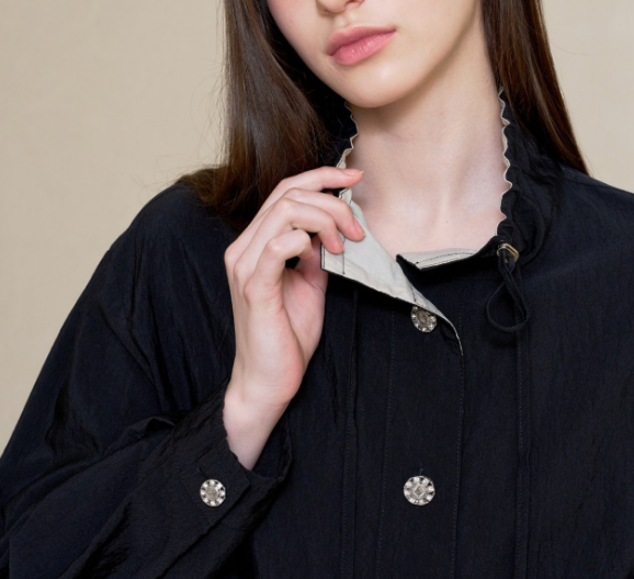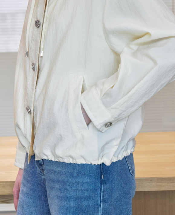 소매 끝부분에 살짝 셔링 디자인으로 포인트!