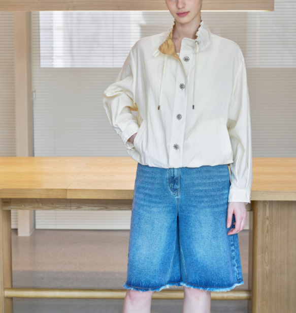 보석단추가 앞선을 따라 쭉 있어 고급스런 무드~