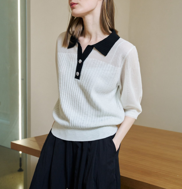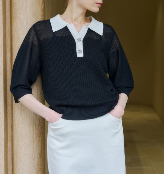 몸판과 카라 배색이 들어갔기때문에
