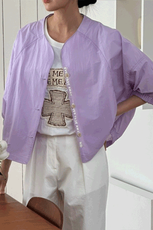 [BJK102 네크배색 보석단추 바람막이 나일론 점퍼재킷]