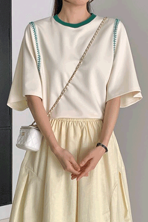 옷은 맘에 드는데 모델이 말라서 핏이 감이 잘 안왔는데 실물 영접하니 완전 맘에 들어요. 모델보다 저처럼 살짝 통통한 사람이 입으니까 훨씬 예쁜것 같아요. 날씬해 보이고 티셔츠이지만 블라우스보다 고급져여. 전 블루 샀어요. |