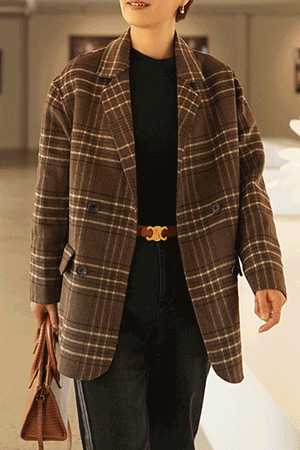 B32_BJK552 핸드메이드 체크 울 하프코트
