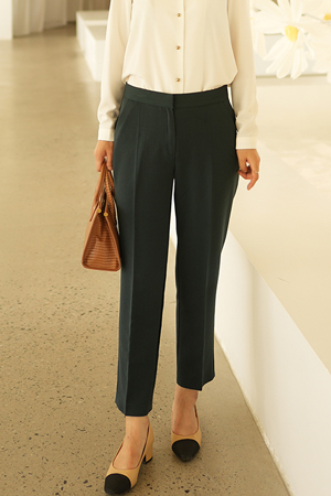 A31_GSL033[멀티사이클][77] 슬림핏 그린 스판 슬랙스