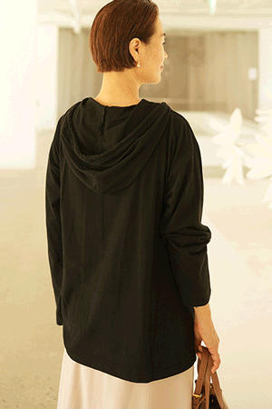 B32_BTS243 드로스트링 후드 롱 티셔츠