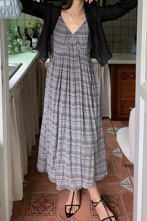 B31_BOP233 [투피스]어깨끈조절 스트링 원피스+쉬폰가디건 세트