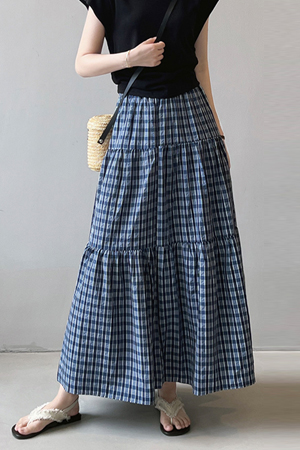 B31_BSK103 [밴딩] 입체 체크 롱 스커트