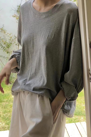 B31_BTS272 언발란스 코튼린넨 롱 티셔츠