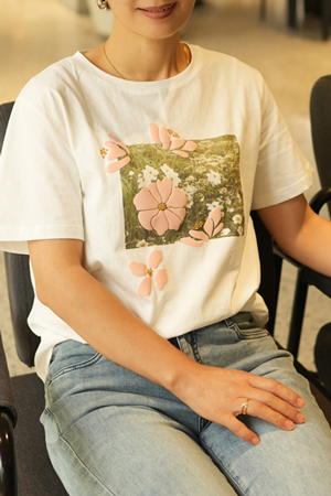 B31_BBL387 [타이 탈부착]모노프린트 7부 블라우스