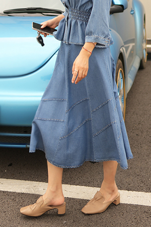B31_BSK100 스트링 보헤미안 실크 린넨스커트