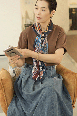 B22_BSK082 [멀티사이클] [뒷밴딩] 웨이브패턴 실크 아세테이트 스판스커트