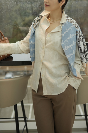 B31_BBL367 나뭇잎 프린트 거즈면 소프트 블라우스