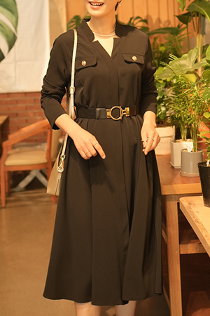 B31_BOP214 [벨트포함]V넥 벨트 원피스