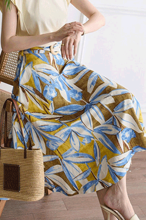 B21_BSK069 야자수 빅플라워 벨트 린넨터치 스커트