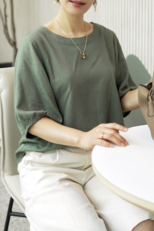 B21_BBL285 [멀티사이클]린넨레이온 벌룬소매 블라우스