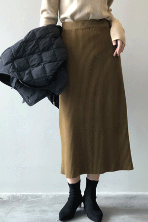 B22_BSK090 [밴딩] H라인 비스코스 니팅 스커트