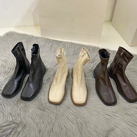 B22_SHO058 [굽3.5cm] 스퀘어토 로우힐 앵클 부츠