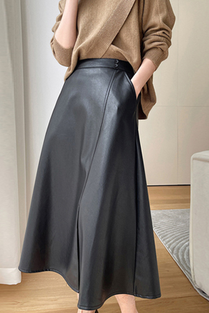 B22_BSK088 [뒷밴딩] A라인 슬릿 에코가죽 스커트