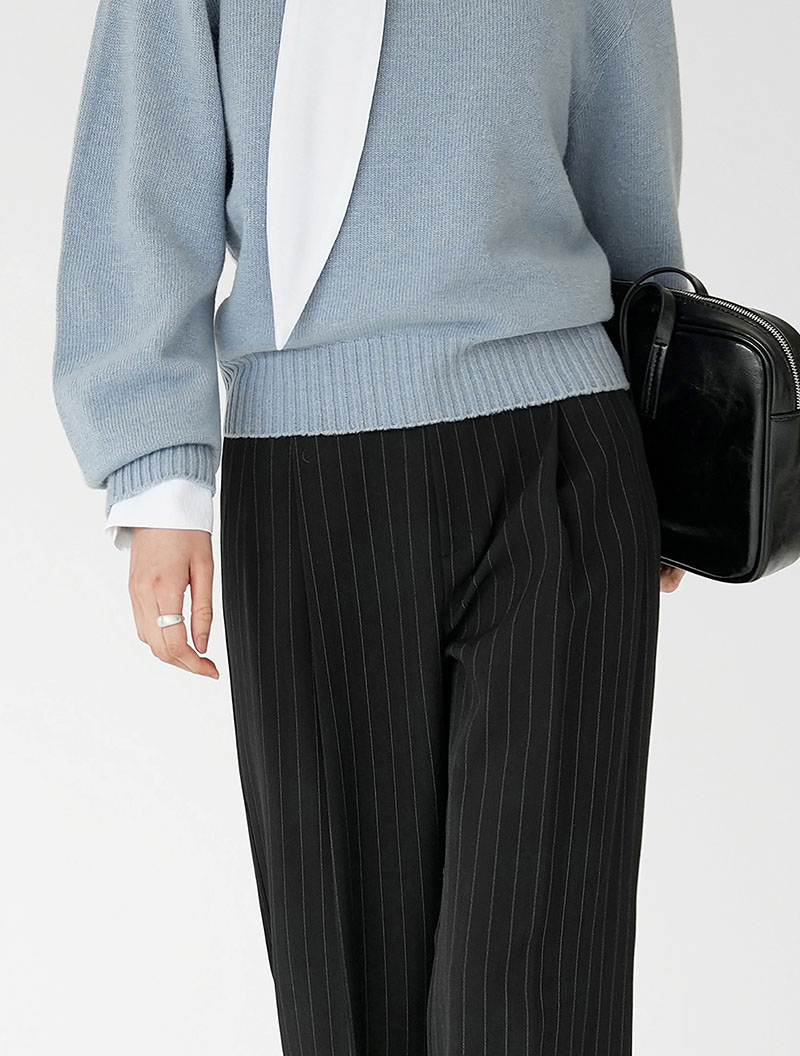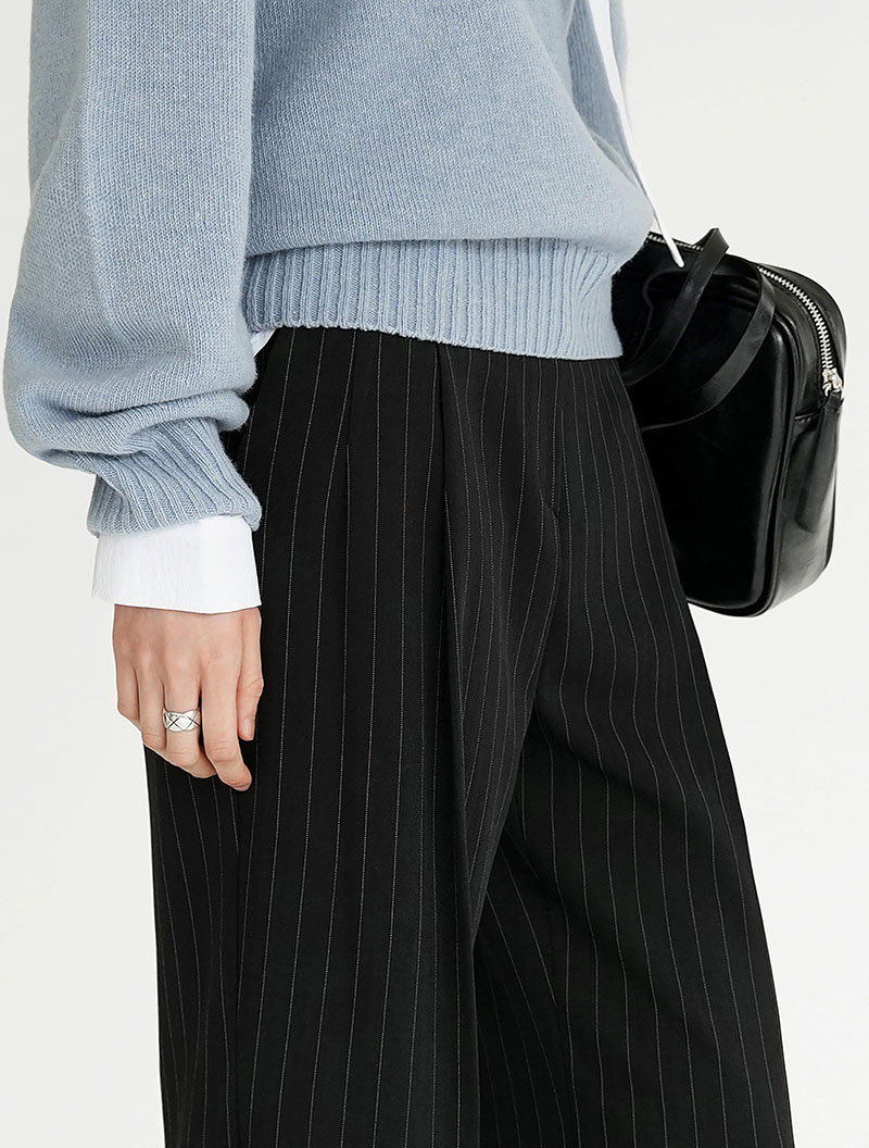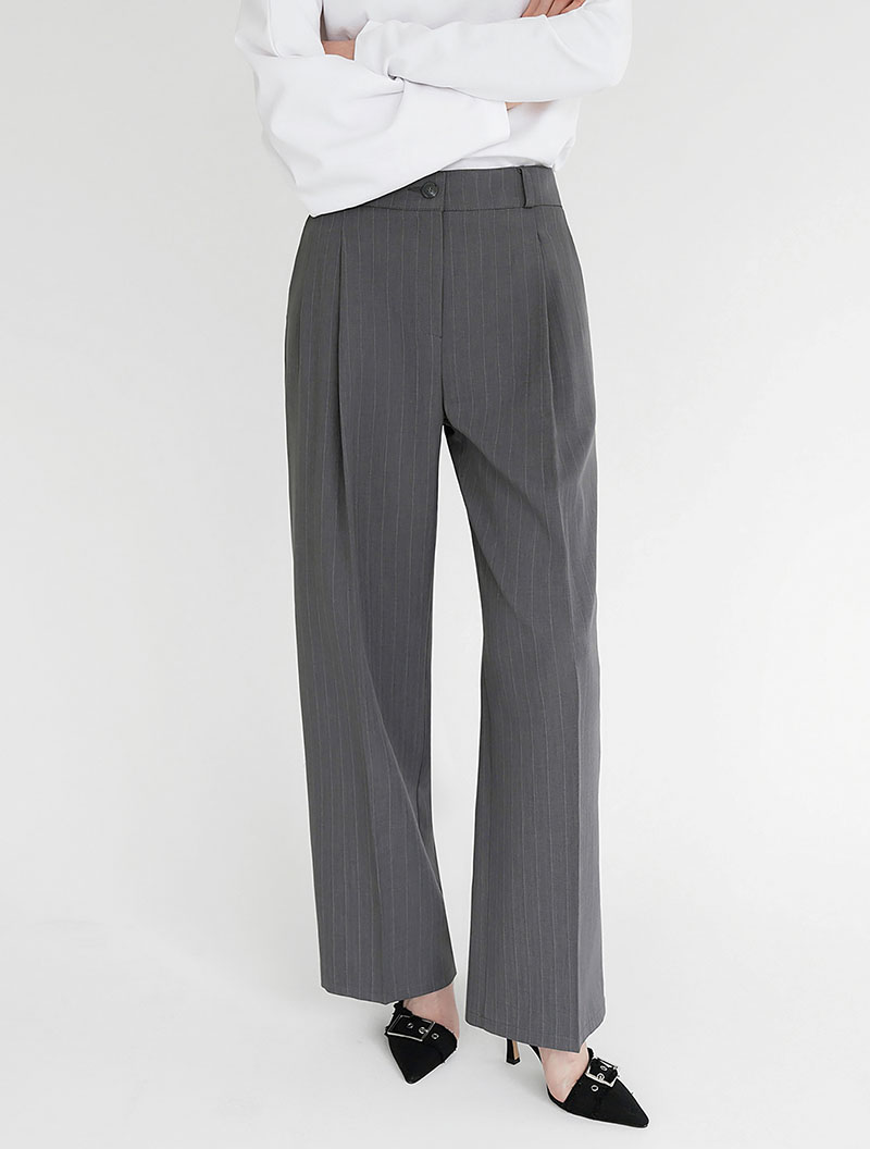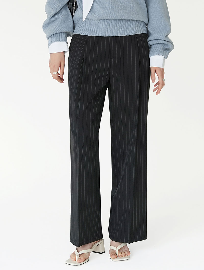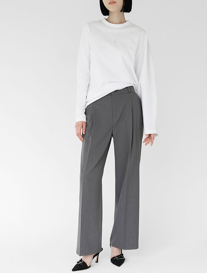 은은한 헤링본 조직이 더해져 일반 스트라이프 슬랙스보다