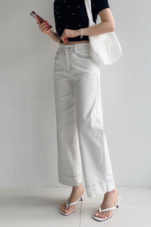BSL390[봄신상 ] 스티치 포인트 밴딩 크롭 데님 와이드 9부 팬츠