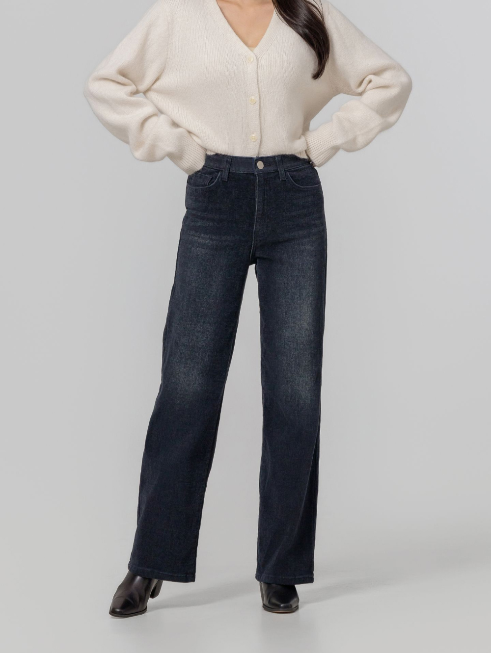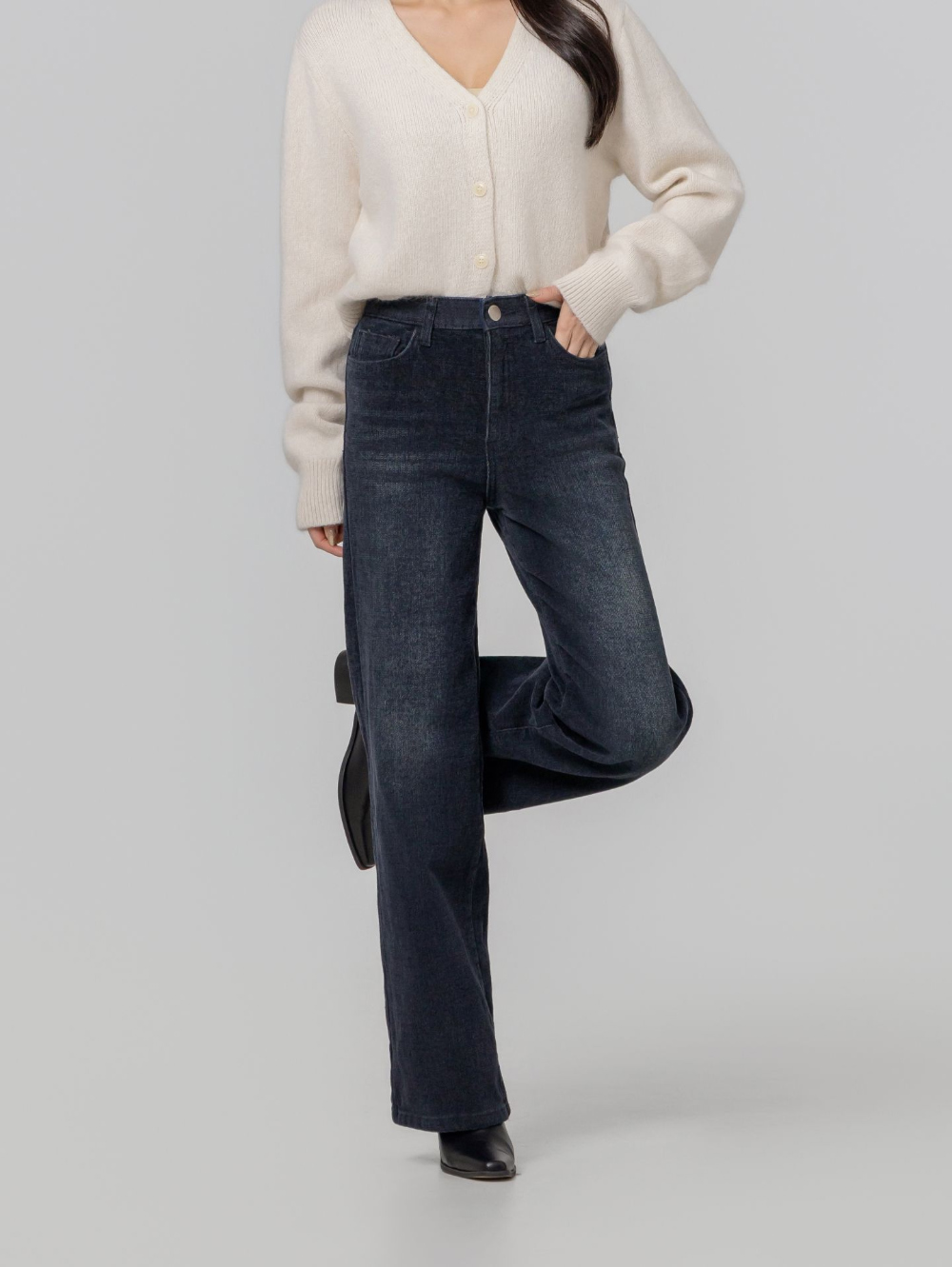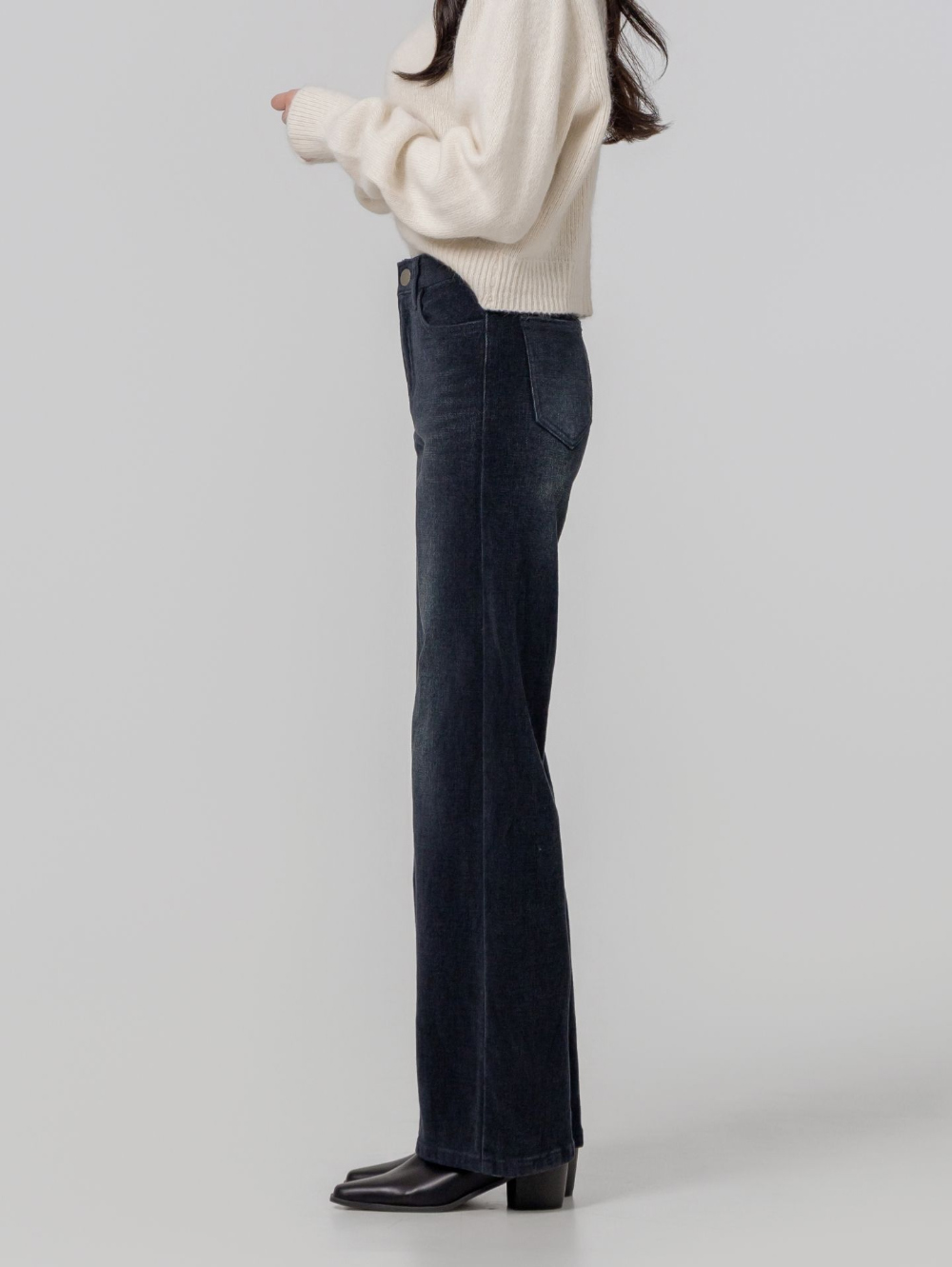 부드럽고 도톰한 두께감의 스판 데님 원단으로