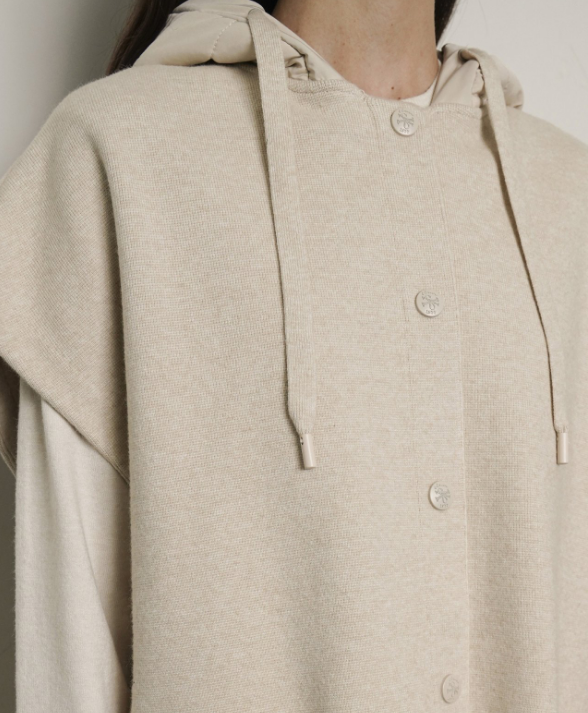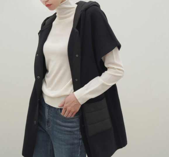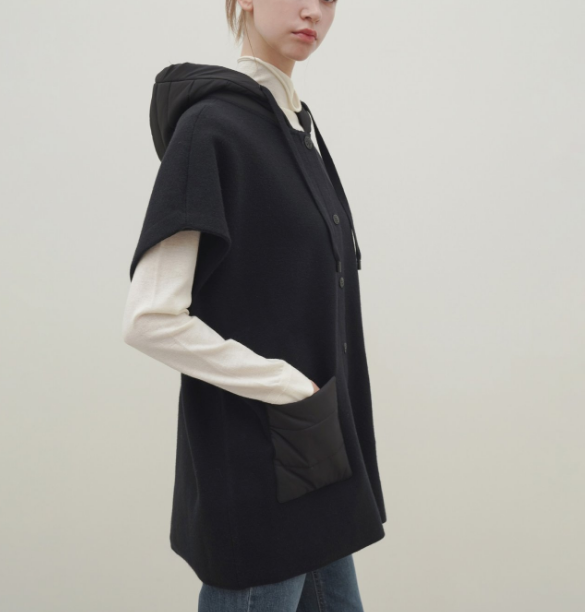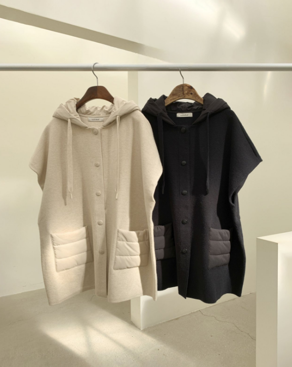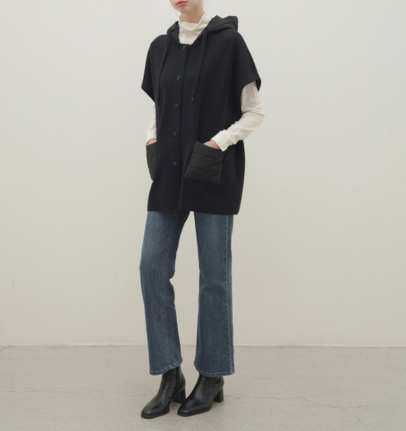 BJK082 니트 판초 패딩 후드 케이프